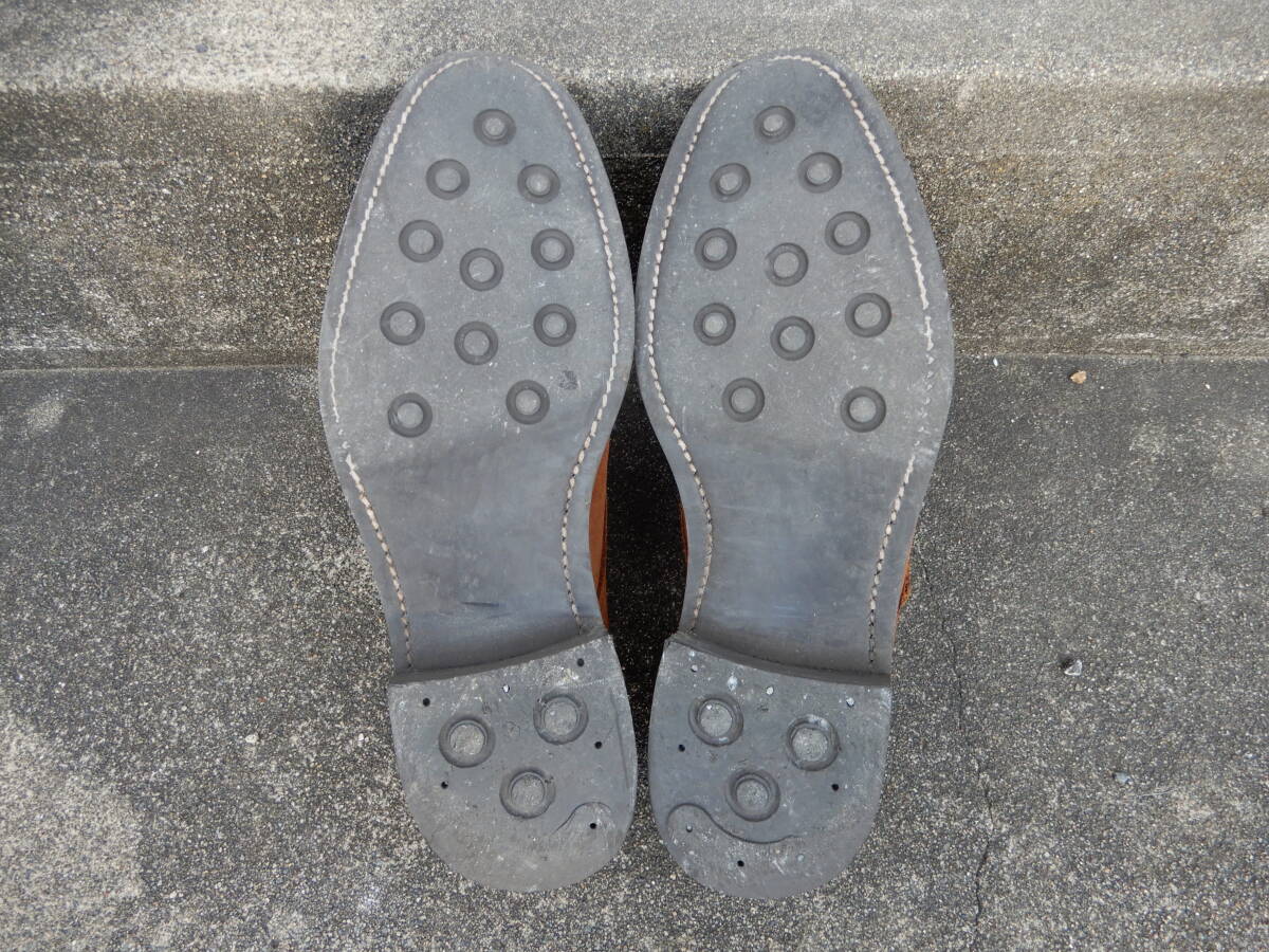 ラバーソールの状態は、つま先は少々削れており、踵はトップリフトのみ削れがあります。