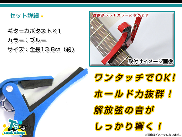 メール便 アコースティックギター フォークギター エレキギター 対応 バネ式クリップタイプ カポタスト カポ ブルー 青