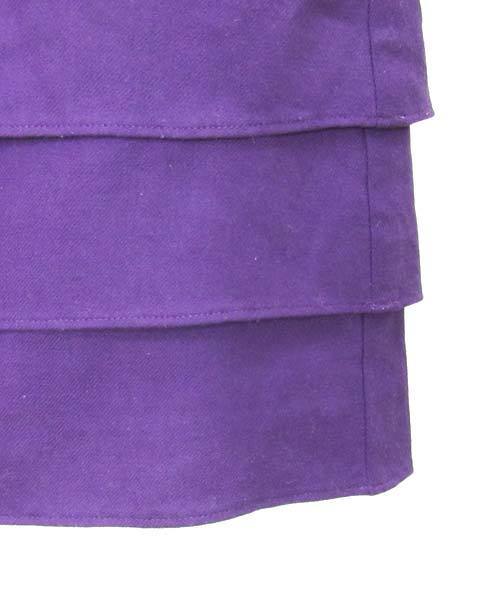 | シックなパープルが印象的なティアードスカート。4段のティアードデザインが大人かわいい一枚。フェミニンなブラウスからシックなジャケットとのコーディネートなど幅広いコーディネートが楽しめます。サイドファスナー仕様。 |