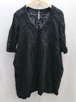 ◇ JEANASIS ジーナシス シンプル フレア 七分袖 ミニ ワンピース サイズF ブラック レディース E