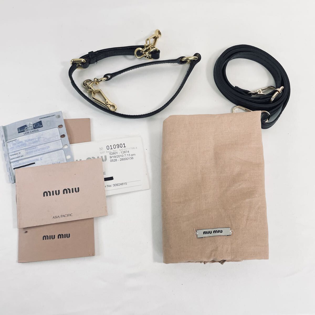 ハンドバッグとして持てるベルトの他に、社外品ですが新品のショルダーベルトも付いておりますので、斜め掛けも可能です。(取り外し可能)