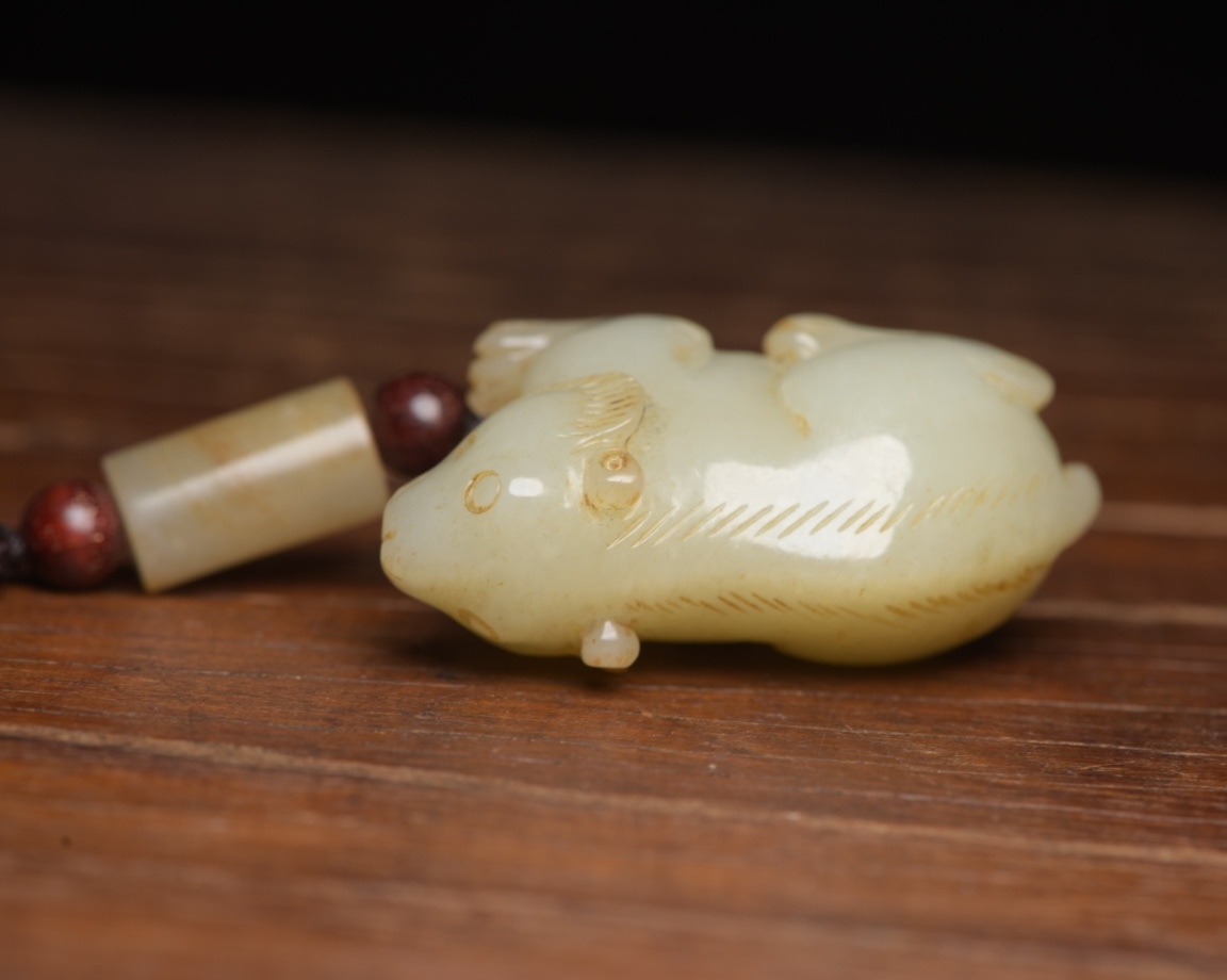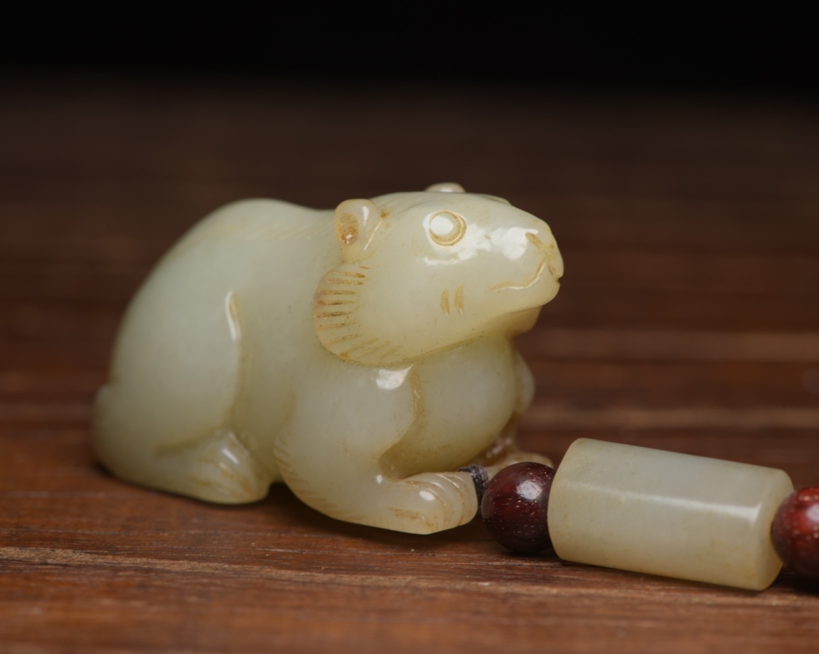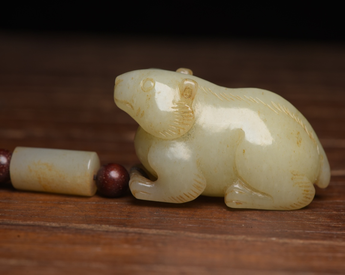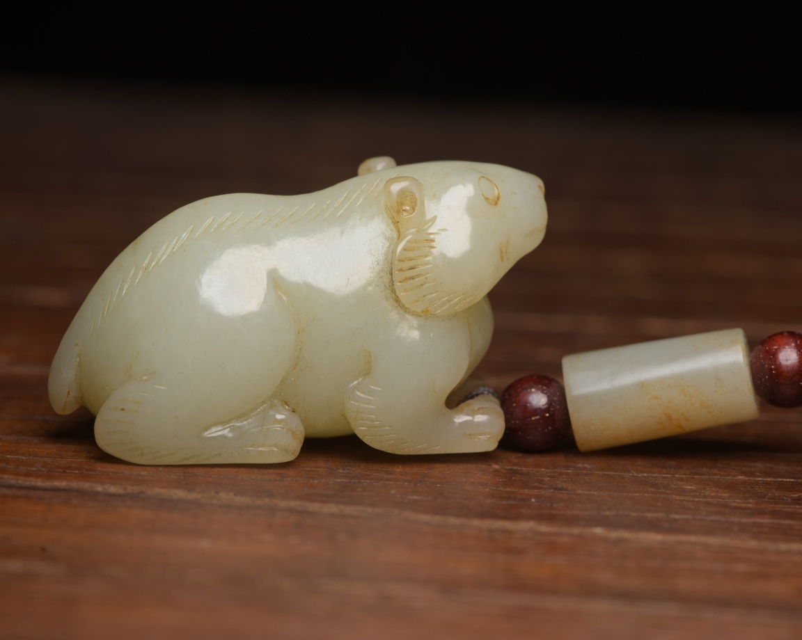 館蔵 和田玉彫 熊 根付 時代物 古董品 貴重 稀少 中国古美術 古美味 蔵出