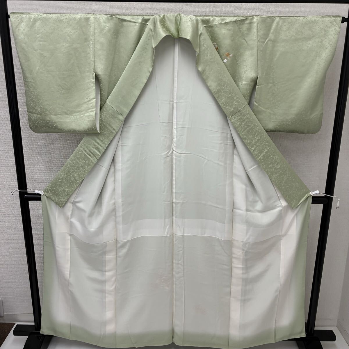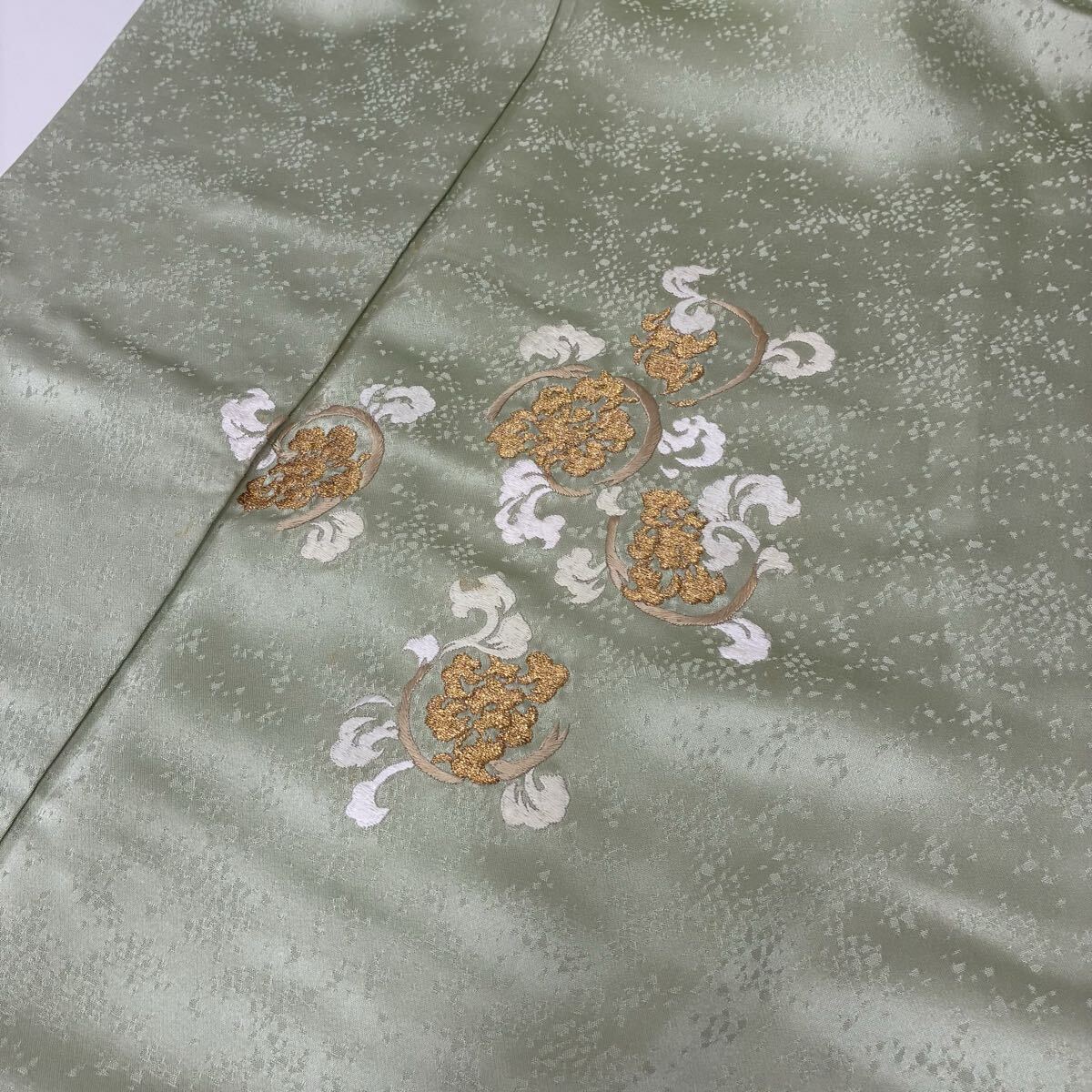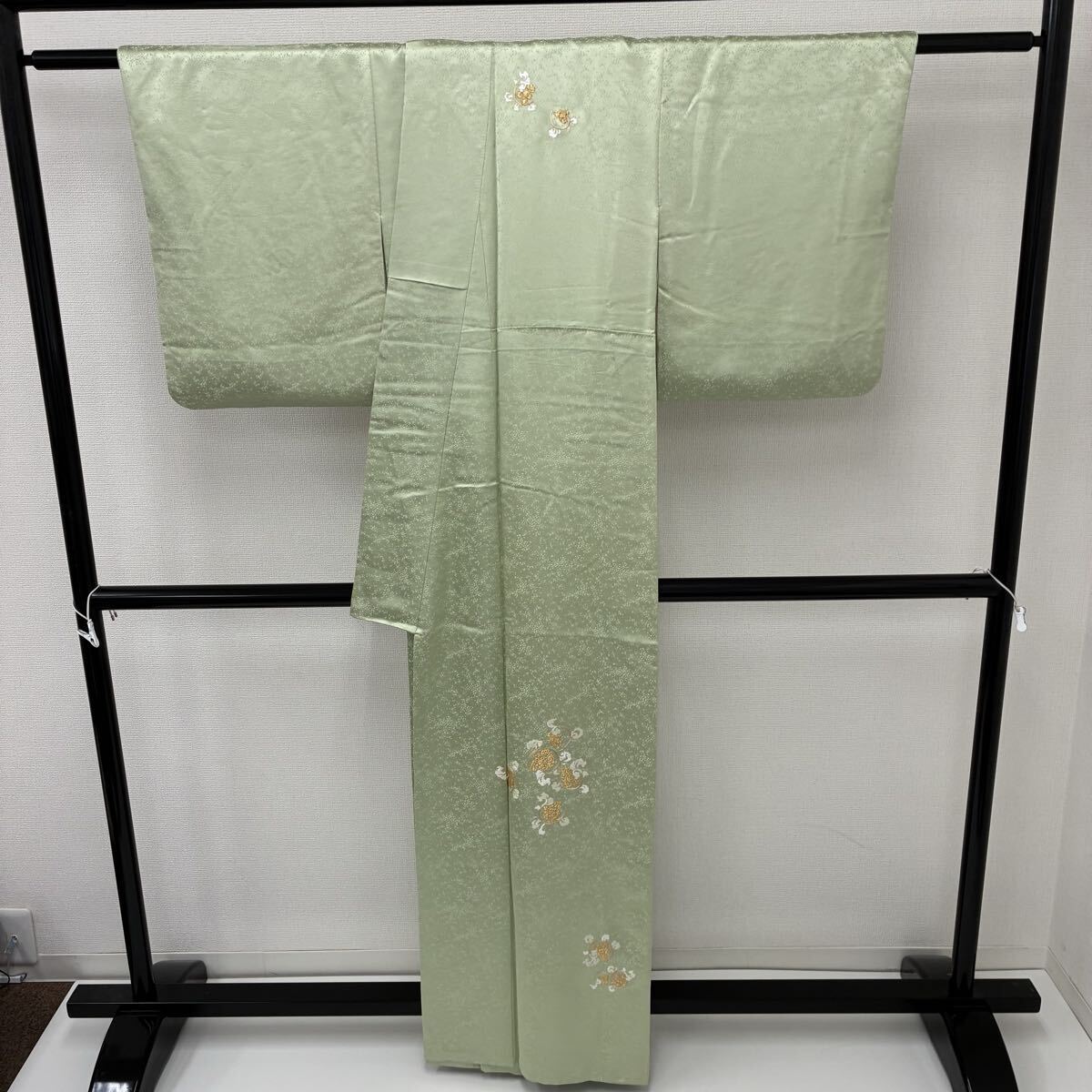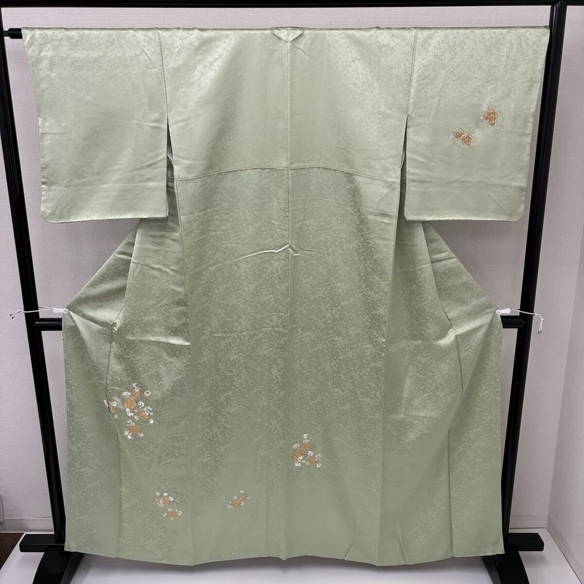 付下げ 正絹 綸子 刺繍の金彩 唐草 一つ紋 着物 F-2759