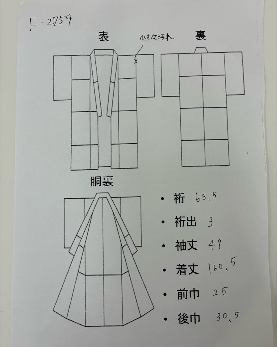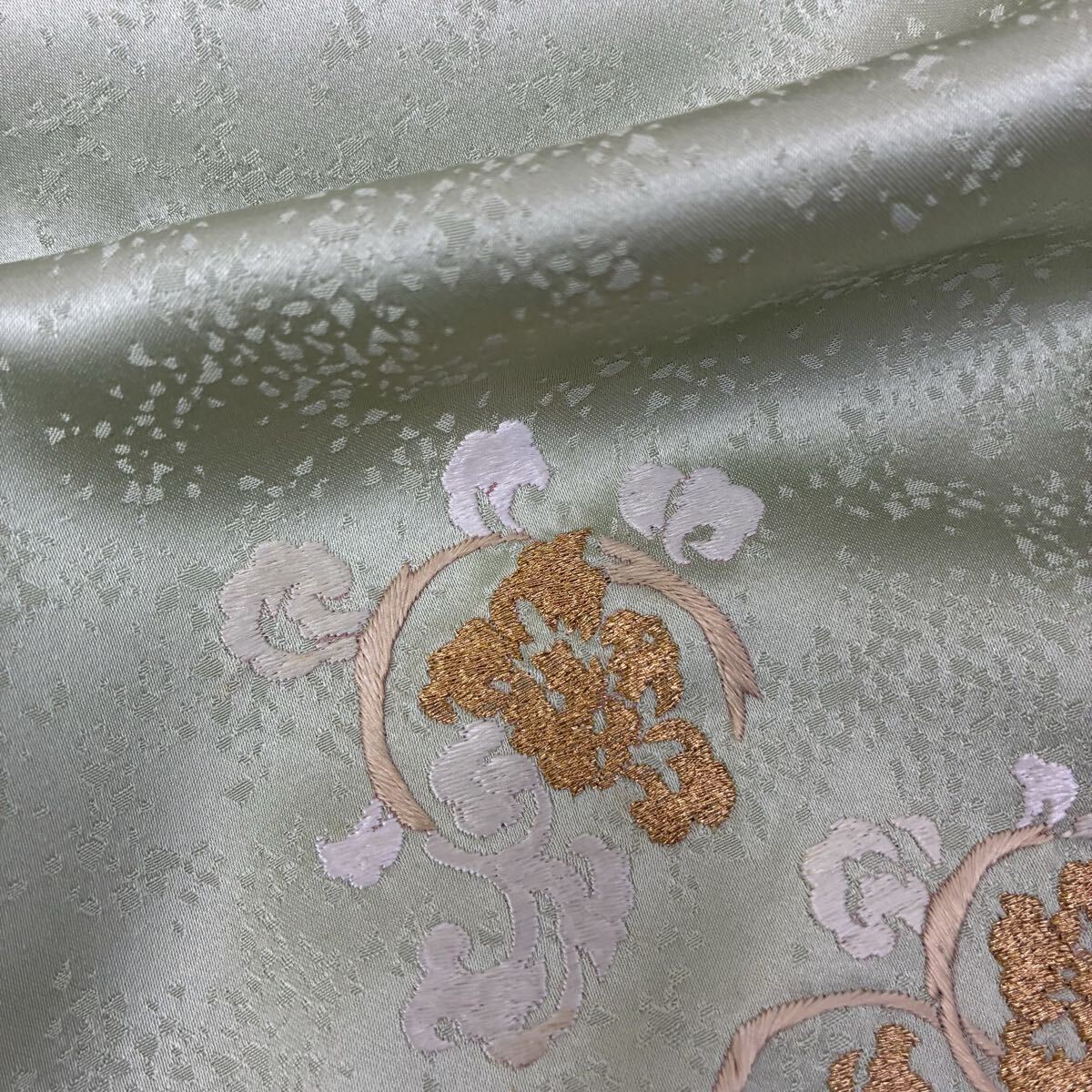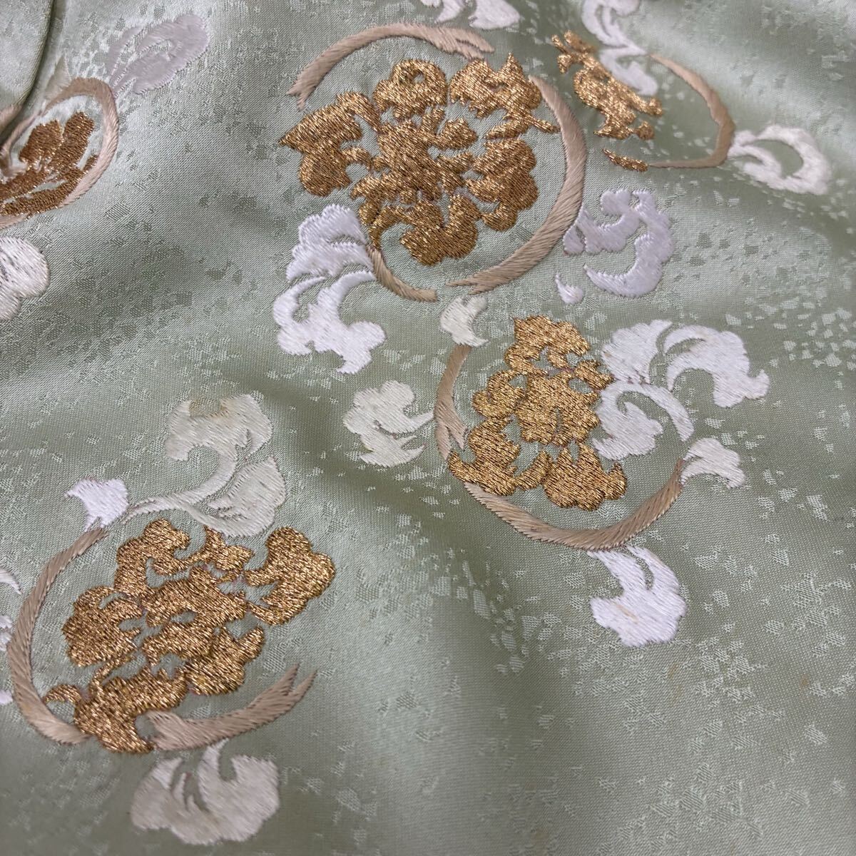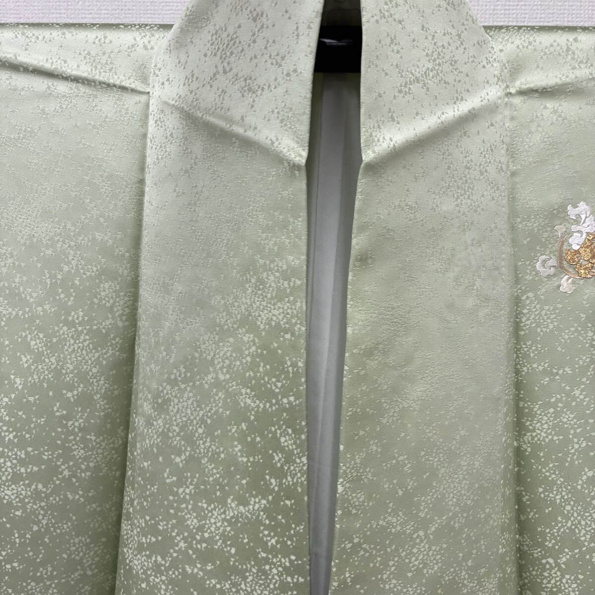 付下げ 正絹 綸子 刺繍の金彩 唐草 一つ紋 着物 F-2759