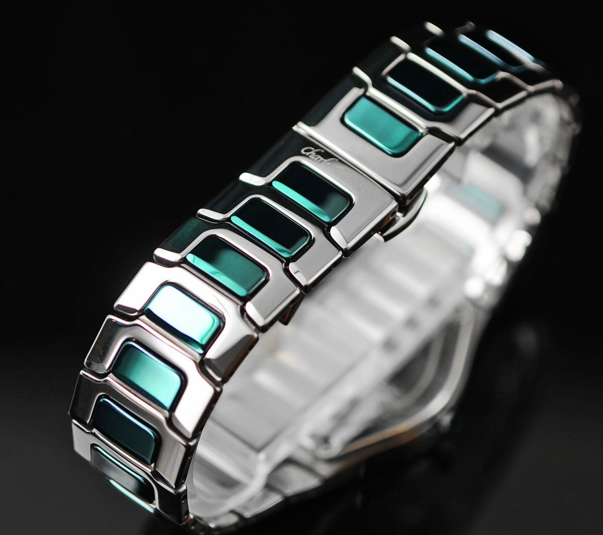 今回の品は、ケースにタングステン、ベルトのカラー部分にセラミックを採用し、文字盤にCZダイヤを散りばめた豪華なスタイリッシュウォッチ。
