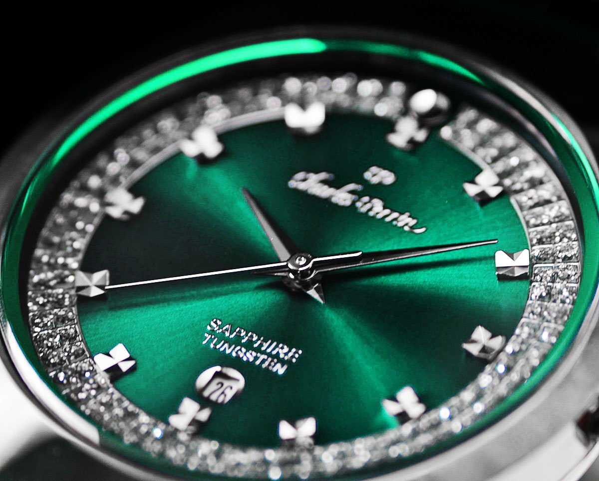 超硬タングステン&セラミック&CZダイヤ&サファイヤクリスタル 豪華 腕時計 メンズ エメラルドグリーン 激レア入手困難