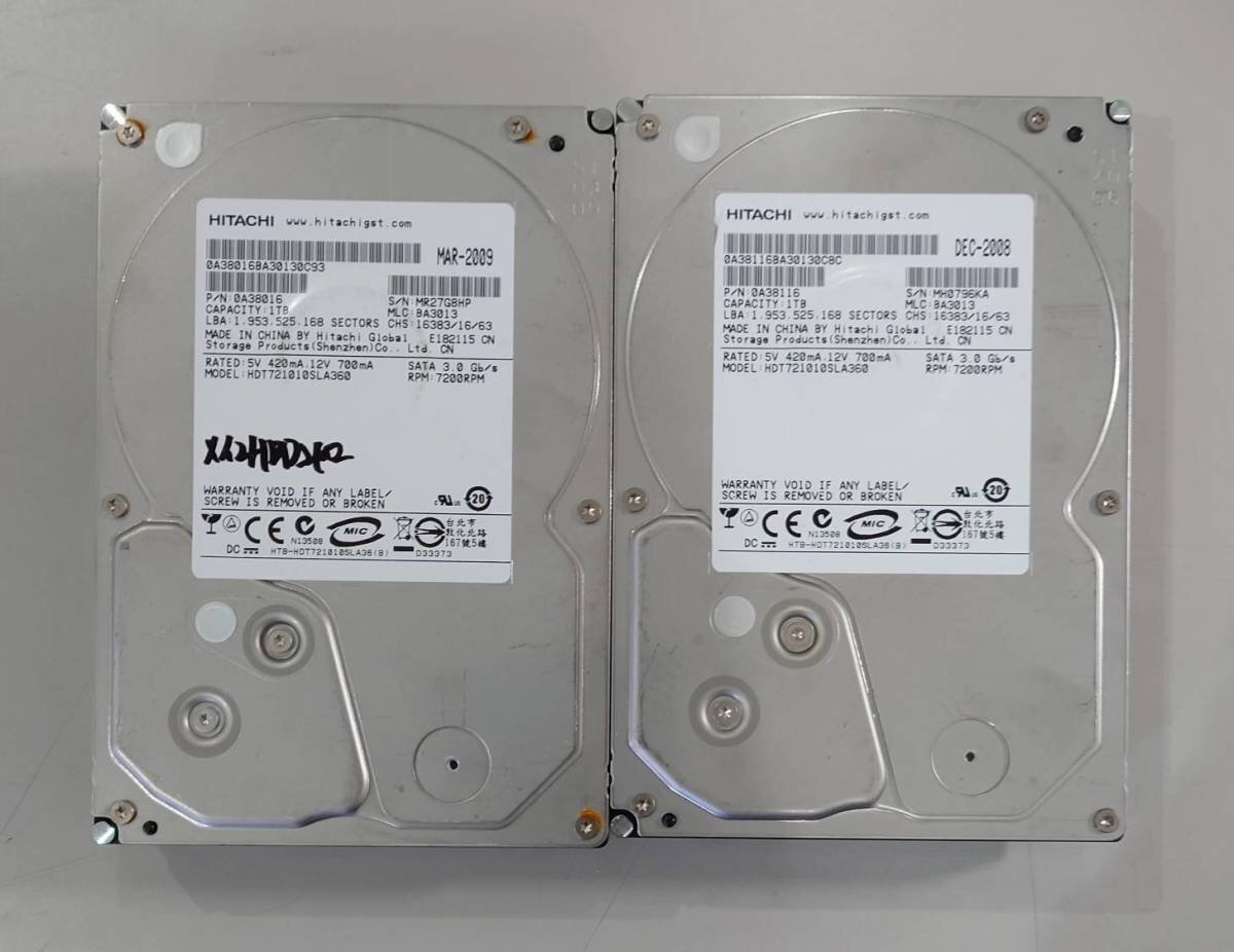 KN2574 【中古品】2個セット HITACHI HDT721010SLA360 HDD 1TB
