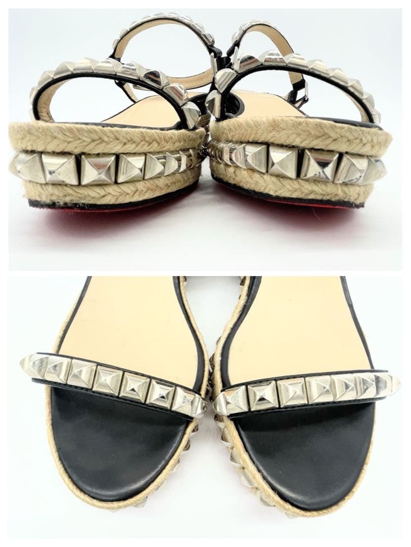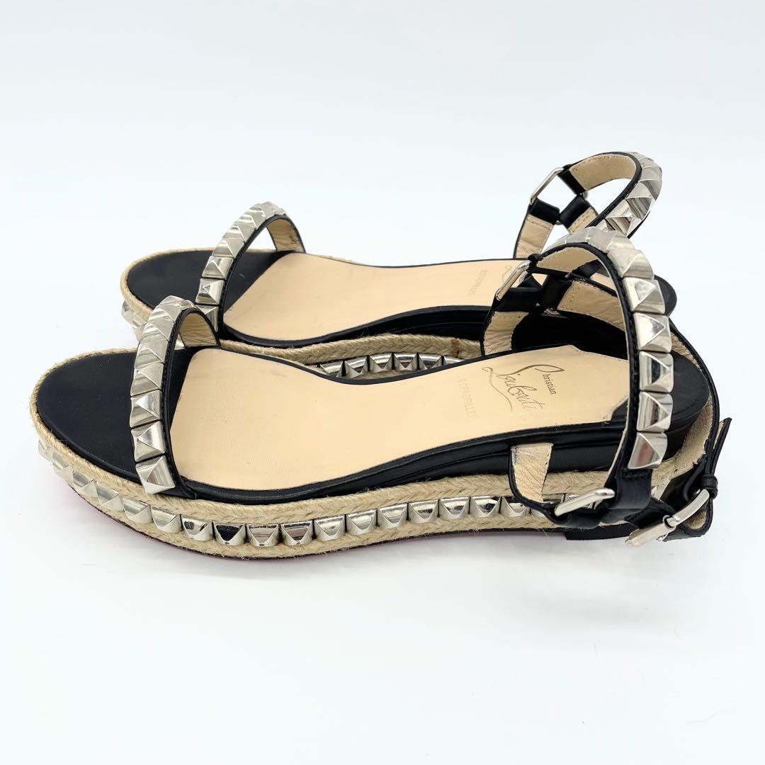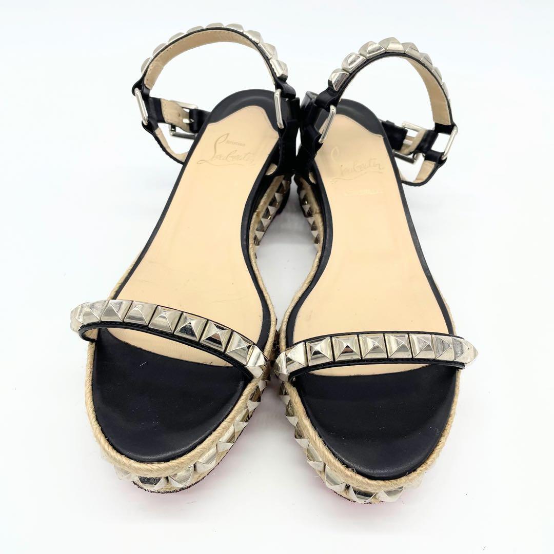 Christian Loubnutin・クリスチャンルブタン・スタッズサンダル・プラットフォーム・ラフィア・ブラック・レザー・23.5㎝