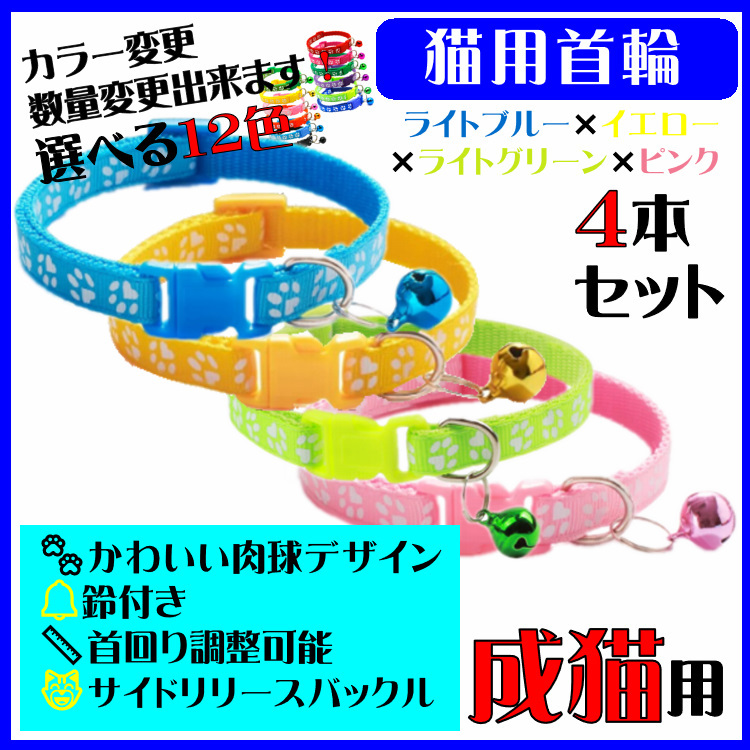 | ★☆(C74-2) 猫の首輪 成猫用 肉球のデザインが可愛い猫用首輪【4本セット】☆★ | |