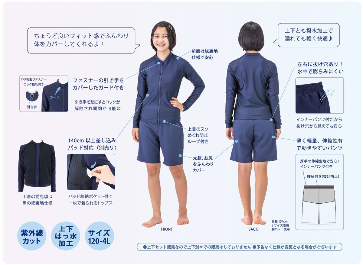 | 詳細 | 【商品名】 男女共用セパレーツ水着 ジェンダーレス 【カラー】 08コン (紺色) 【素材】 トップス、インナーパンツ(撥水加工):ナイロン85%、ポリウレタン15% パンツ(撥水加工):ポリエステル94%、ポリウレタン6% 【特長】 身体のラインが気にならない。 男女で同じデザイン、誰もが快適に着用できる新しいカタチのスイムウェアです。 140cm以上は差し込みのパットが収納できる仕様です。 パットは付属していない為、差し込みタイプのパットをお買い求めくださいませ。 上下セット販売の為、バラでの販売は行っておりません。 キッズ ジュニア スクール水着 プール授業 ボーイズ 男の子 ガールズ 女の子 男女兼用 セパレート セパレーツ 水泳 スイミング ジェンダーレス |