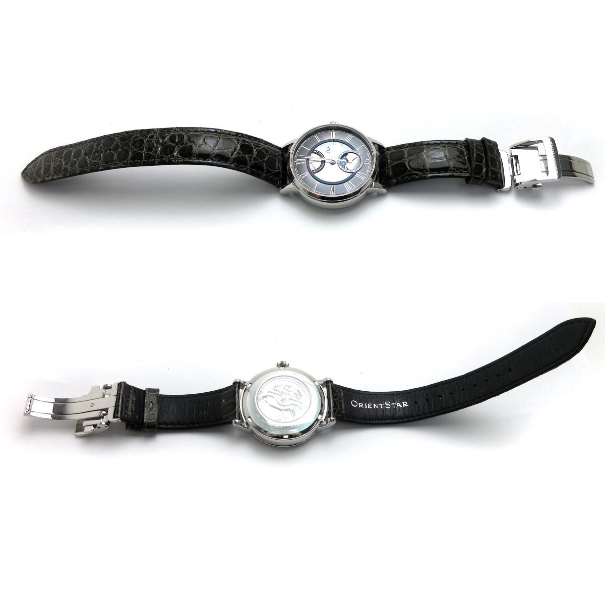 ■1951年に誕生した日本の機械式時計ブランド『オリエント(ORIENT)』。 ■高機能型モデルとして誕生した『オリエントスター(Orient Star)』。 ■メカニカル ムーンフェイズ。 ■白蝶貝にグラデーション塗装を施した神秘的な色合いが美しい文字盤、光の加減や角度により色味に変化が現れ、コンセプトである”夜の静寂に月がひとつ”の通り静寂と余韻を時計1つで感じさせてくれるものになっています。 ■中央にはブランドを体現するロゴ模様もさりげなくデザインされており、 ブランド誕生から続くOSマークを中心に、伝統的な和柄の一つである菱形で全体を繋げて構成されています。 ■12時位置にはパワーリザーブインジケーター50を配し、6時位置に「月齢表示」、さらに月を囲うようにデイトの表示もあります。 ■国内限定350本の希少な品です。 ◎オートマチックムーブ。 ◎カレンダー。 ◎ムーンフェイズ。 ◎シースルー、スクリューバック。 ◎Wプッシュボタンつきバックル。 ---【商品状態】--- ☆外装、クリーニング済、微細なキズはありますがキレイです。 ☆バンド、微小な使用感ありますがキレイです。 ☆中古商品のため防水性の保障はつきませんのでご了承ください。 ※裏蓋に保護シールがついたままになりますのでお好みではがしてください。 ※商品画像はお客様のモニター環境によっては色調が異なって見える場合がございますのでご了承ください。 |