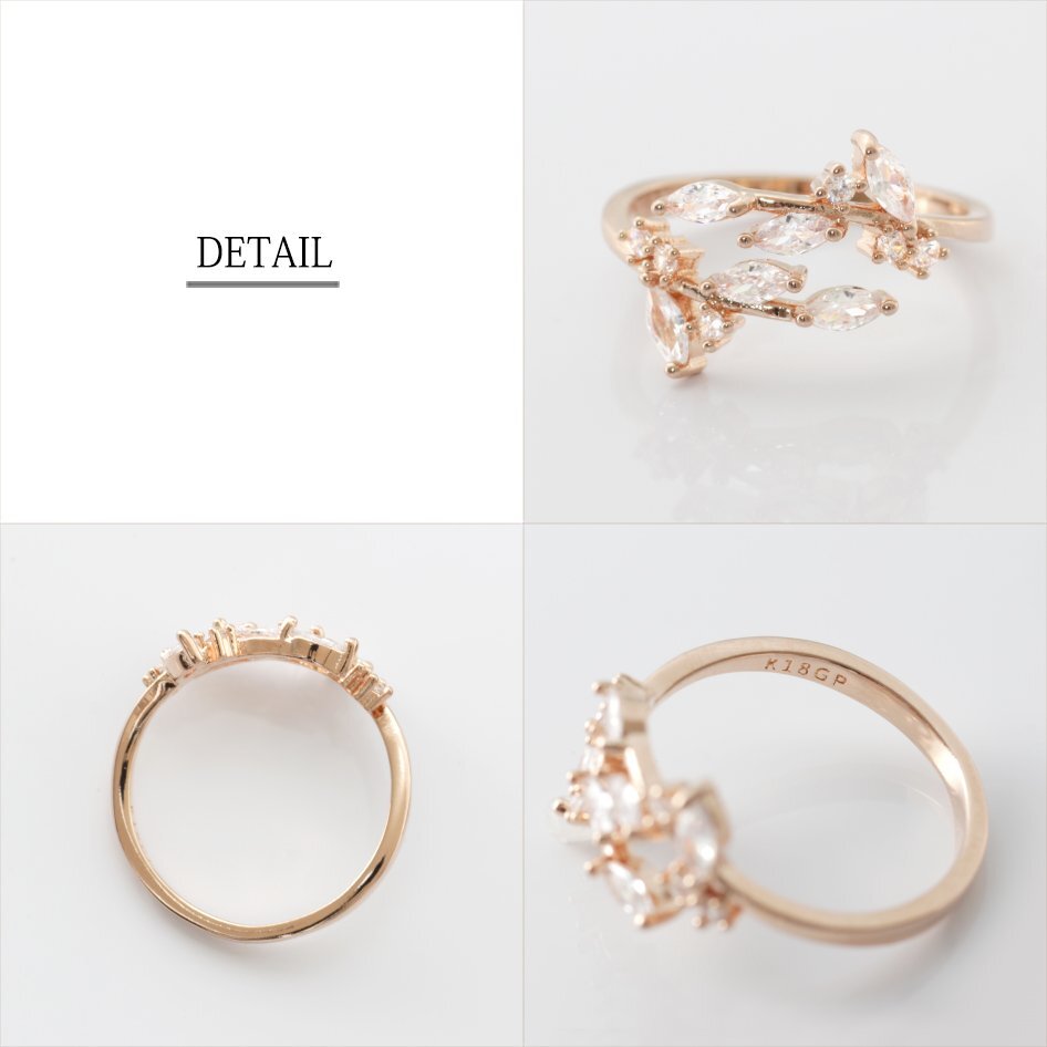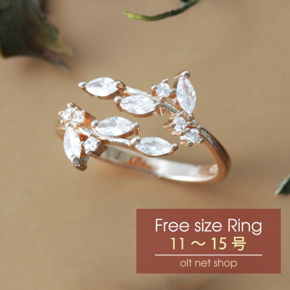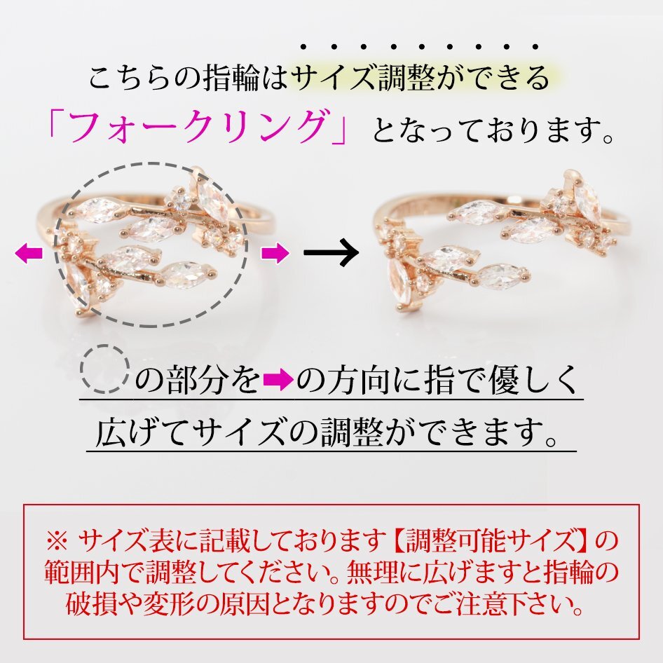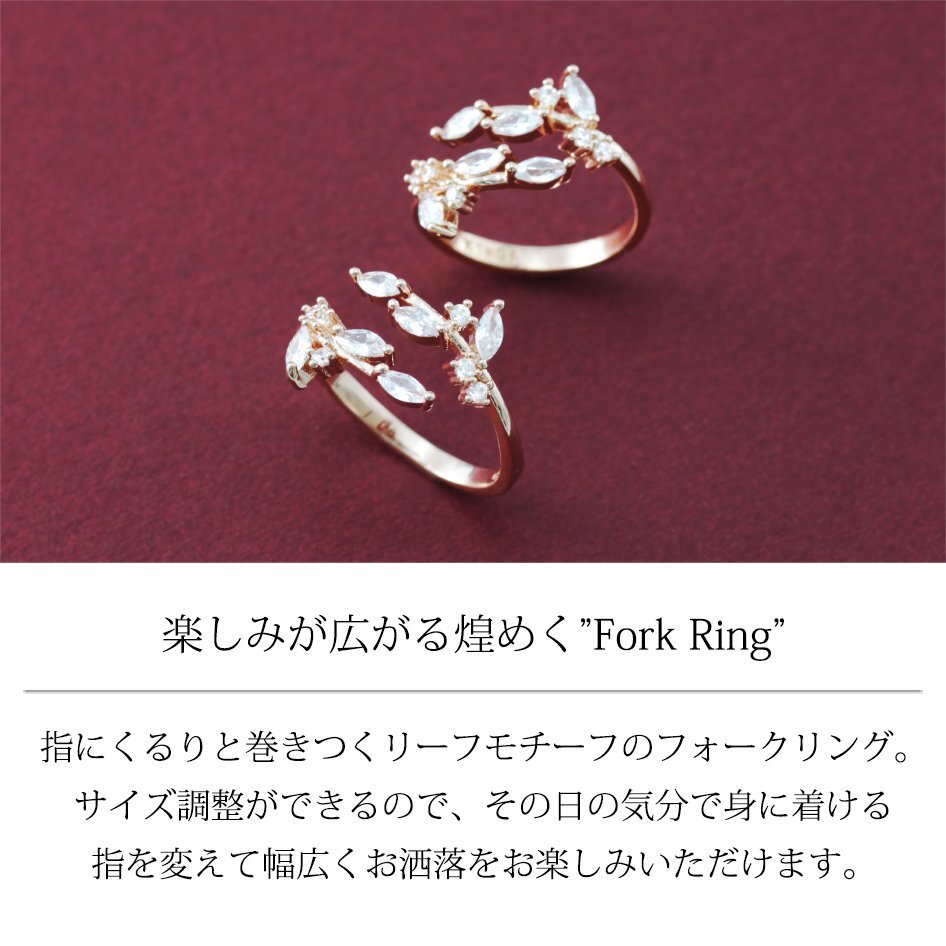 11号~15号 調整可能リング/ 新品 指輪 K18GP フリーサイズ リーフ 葉 フォークリング 18金 ピンクゴールド レディース プレゼント 女性 女