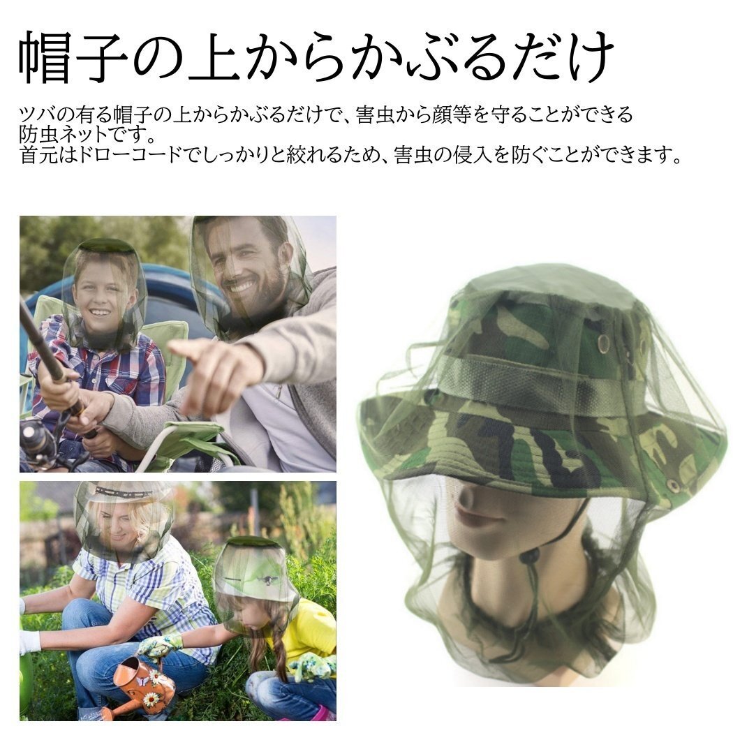 ■ツバの有る帽子の上からかぶるだけで、害虫から顔や首を守ることのできる防虫ネットです