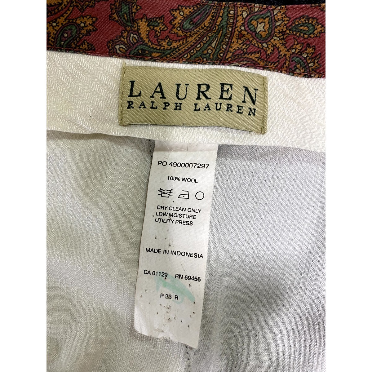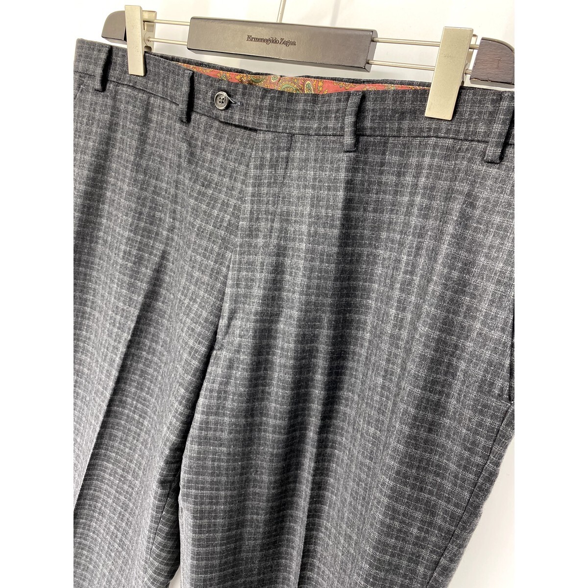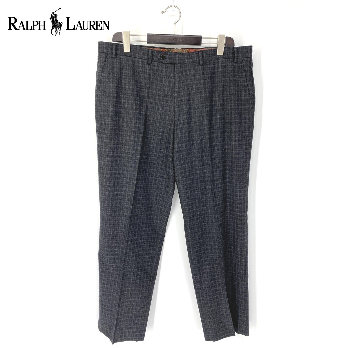 A6486/美品 春夏 RALPH LAUREN ラルフローレン 緑タグ ウール チェック トラウザーズ スラックス パンツ38R 灰色/メンズ スーツ用 ビジネス