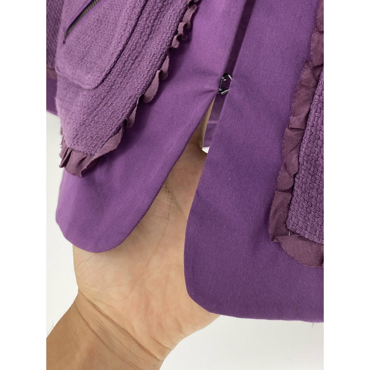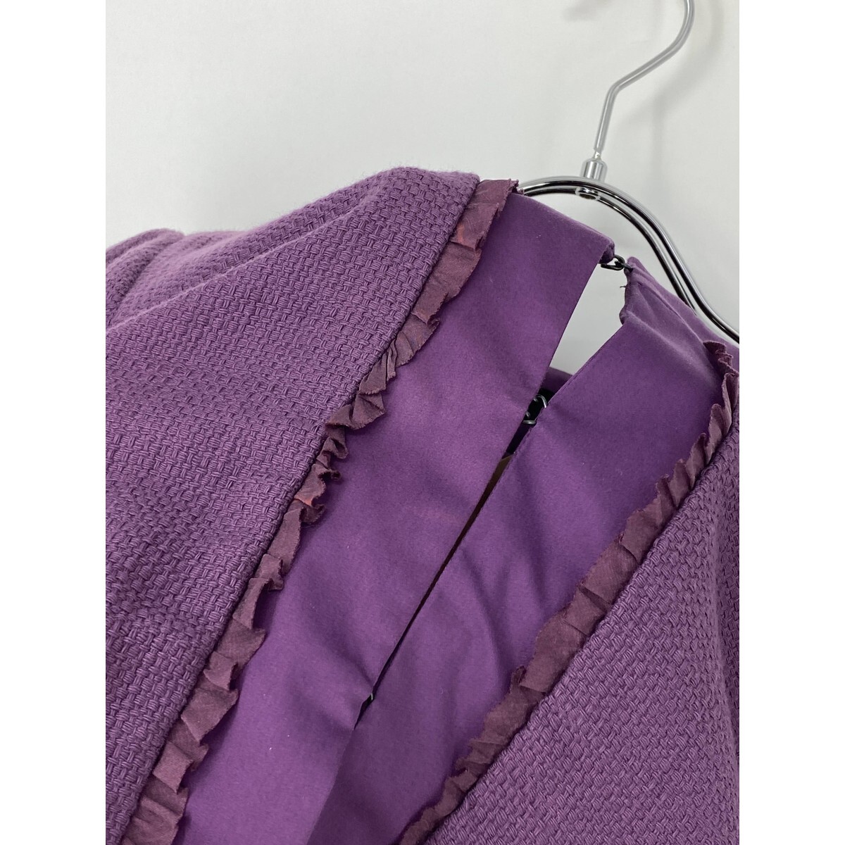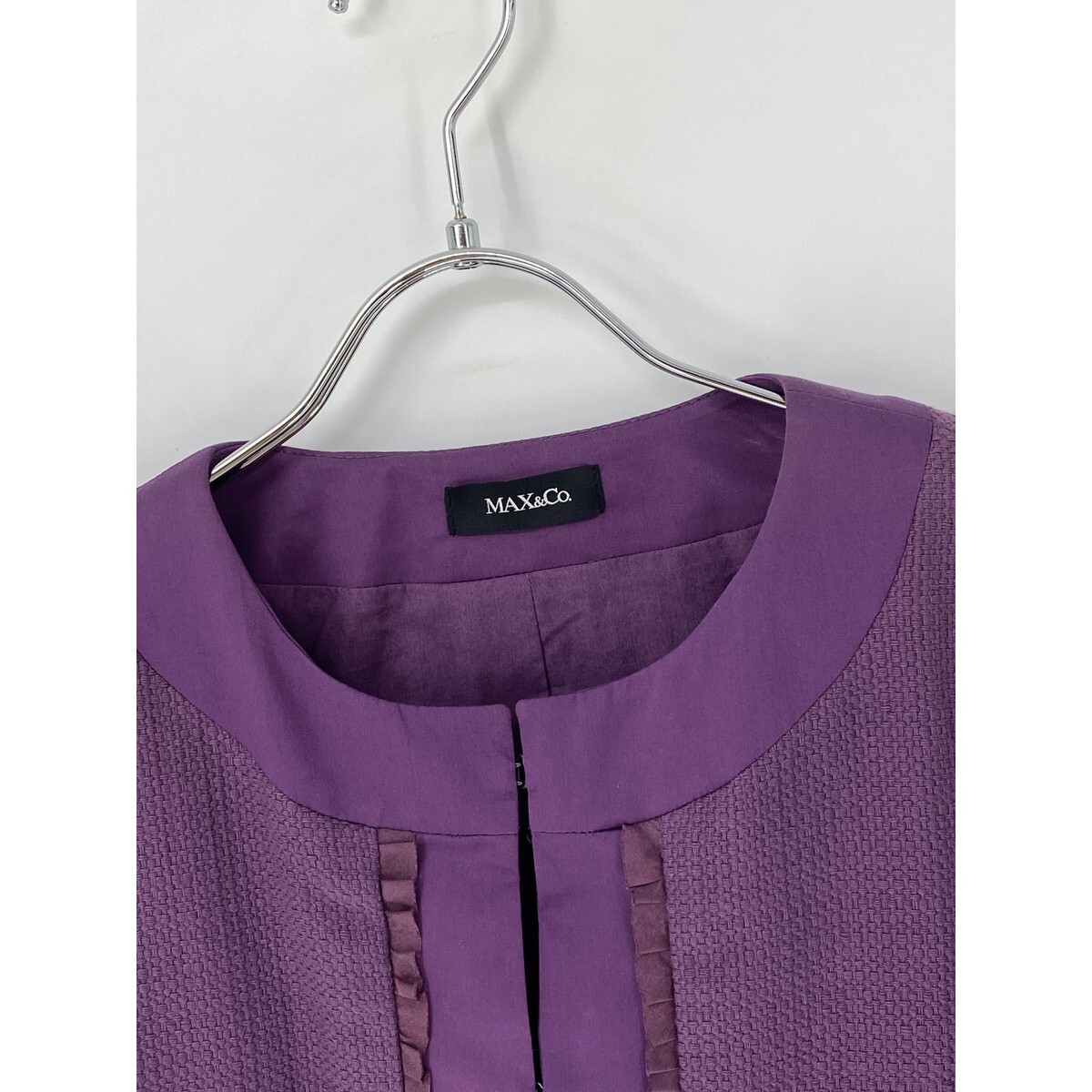 A9776/春夏 Max&Co. マックスアンドコー ツイード ノーカラー 前開き ボタンレス テーラード シングル フリル ジャケットM程 紫 レディース