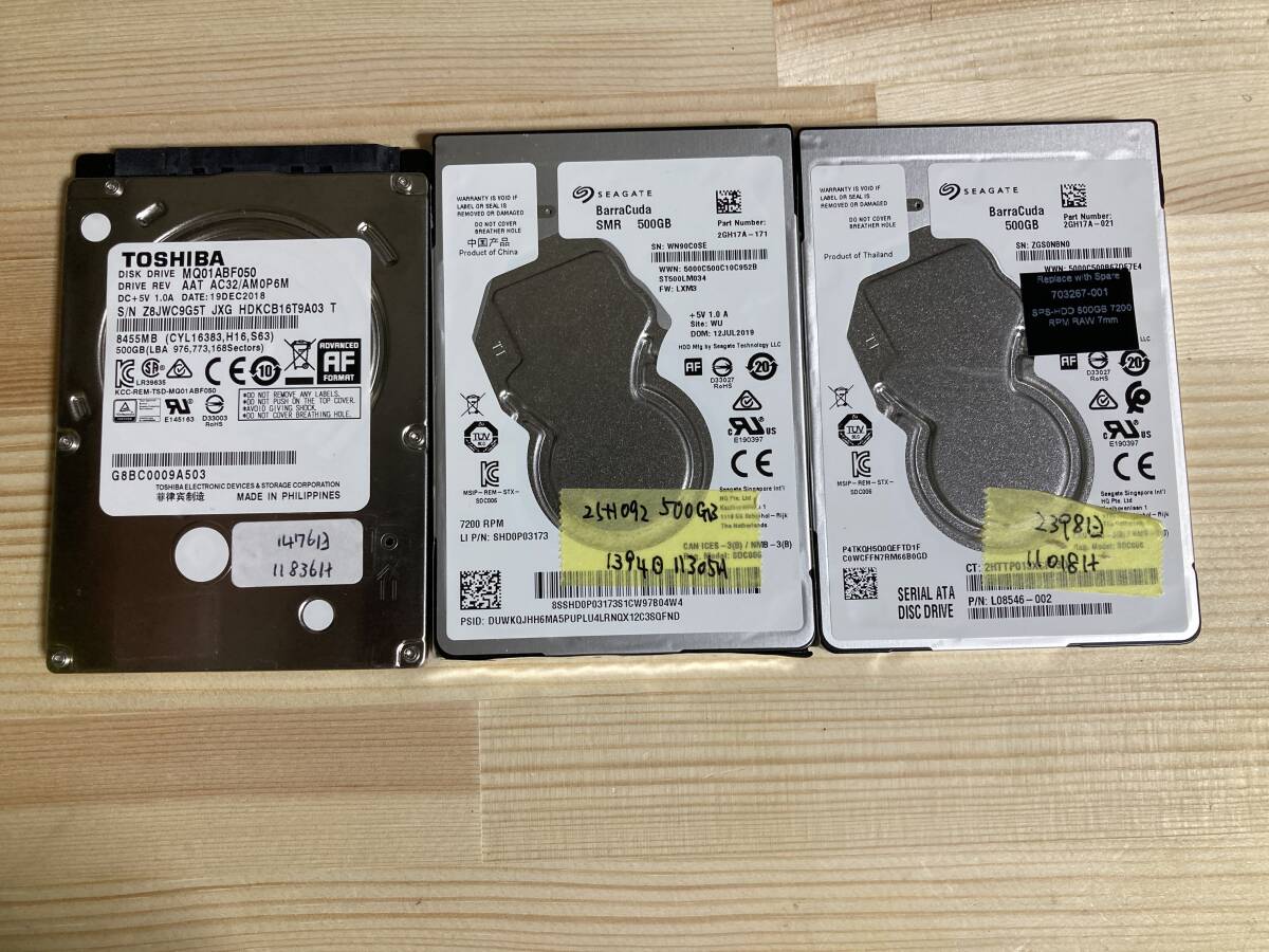 中古 ハードディスク 500GB×3(SEAGATE×2 東芝×1) ■SATA 2.5インチ