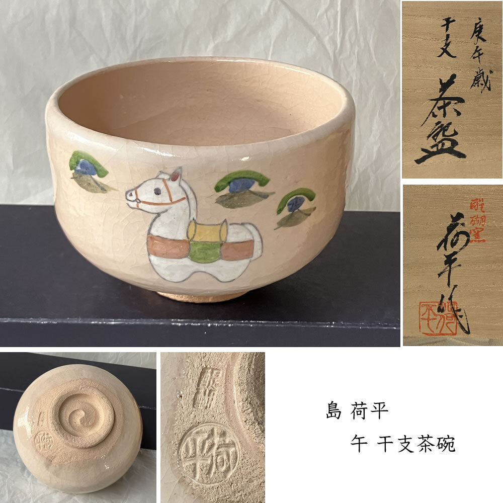 ◇F1433 醍醐窯 二代 島荷平 庚午歳 干支茶碗 共箱 抹茶碗 干支 午 馬 ウマ 茶道具