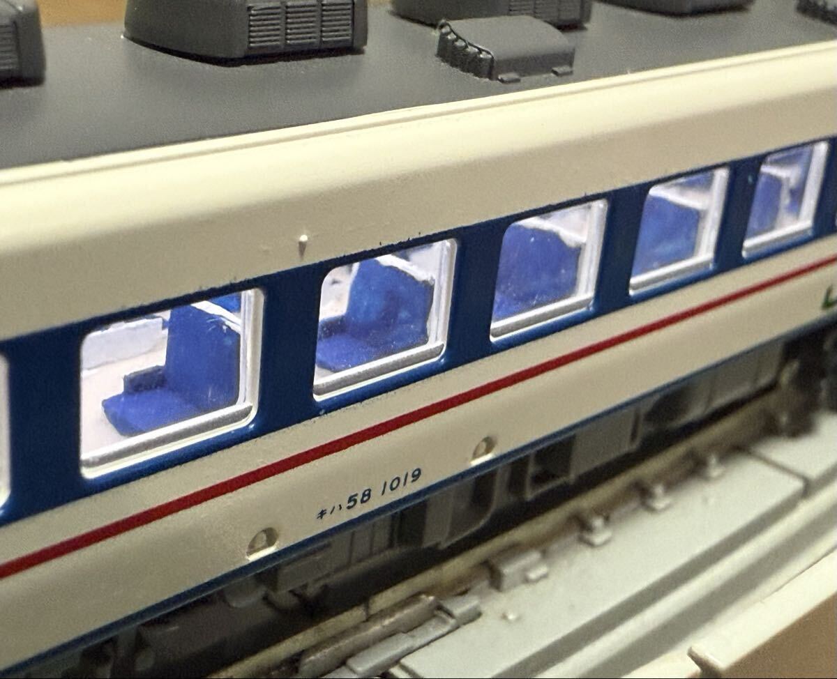 N-GAUGE KATO 10-357 キハ58系 急行形気動車(新潟色) 方向幕点灯 高輝度LED化 車掌室点灯 大容量コンデンサ付LED室内灯 内装塗装済 整備済