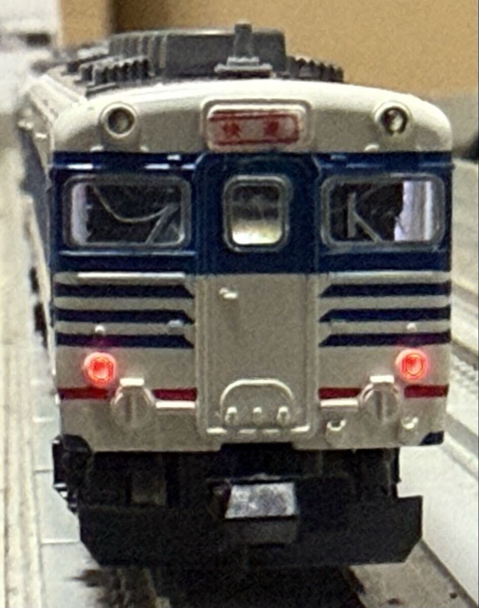 ② 通常では点灯しない最後尾の車掌室室内灯が実車同様に後進時にほのかに蛍光灯色に点灯するように加工しました。