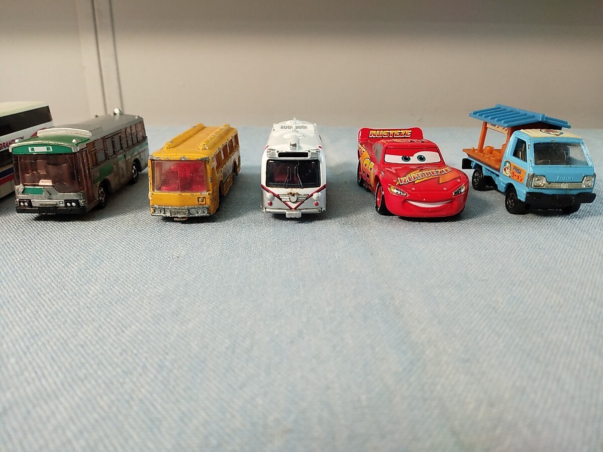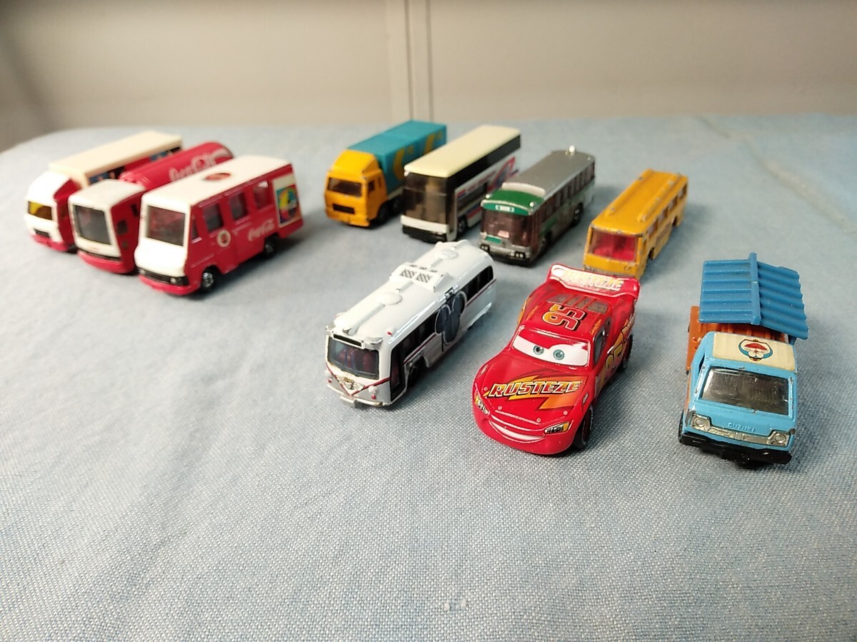 ミニカー まとめ トミカ 10台 傷汚れあり TOMICA トラック トレーラー バス ディズニー ドラえもん カーズ3 コカ コーラ