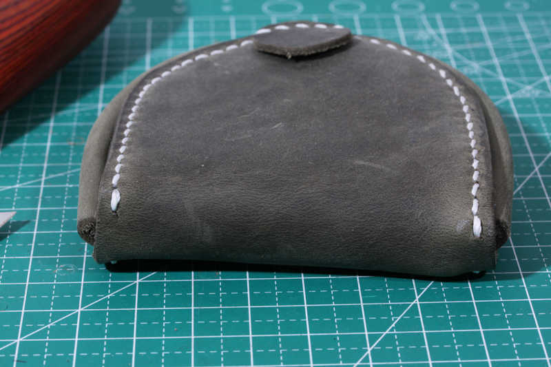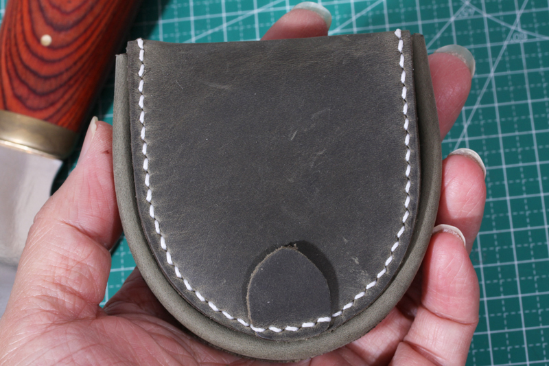 新出品手縫い本革 半円型(馬蹄型)小銭入れ(コインケース)ブライドルレザー灰緑色