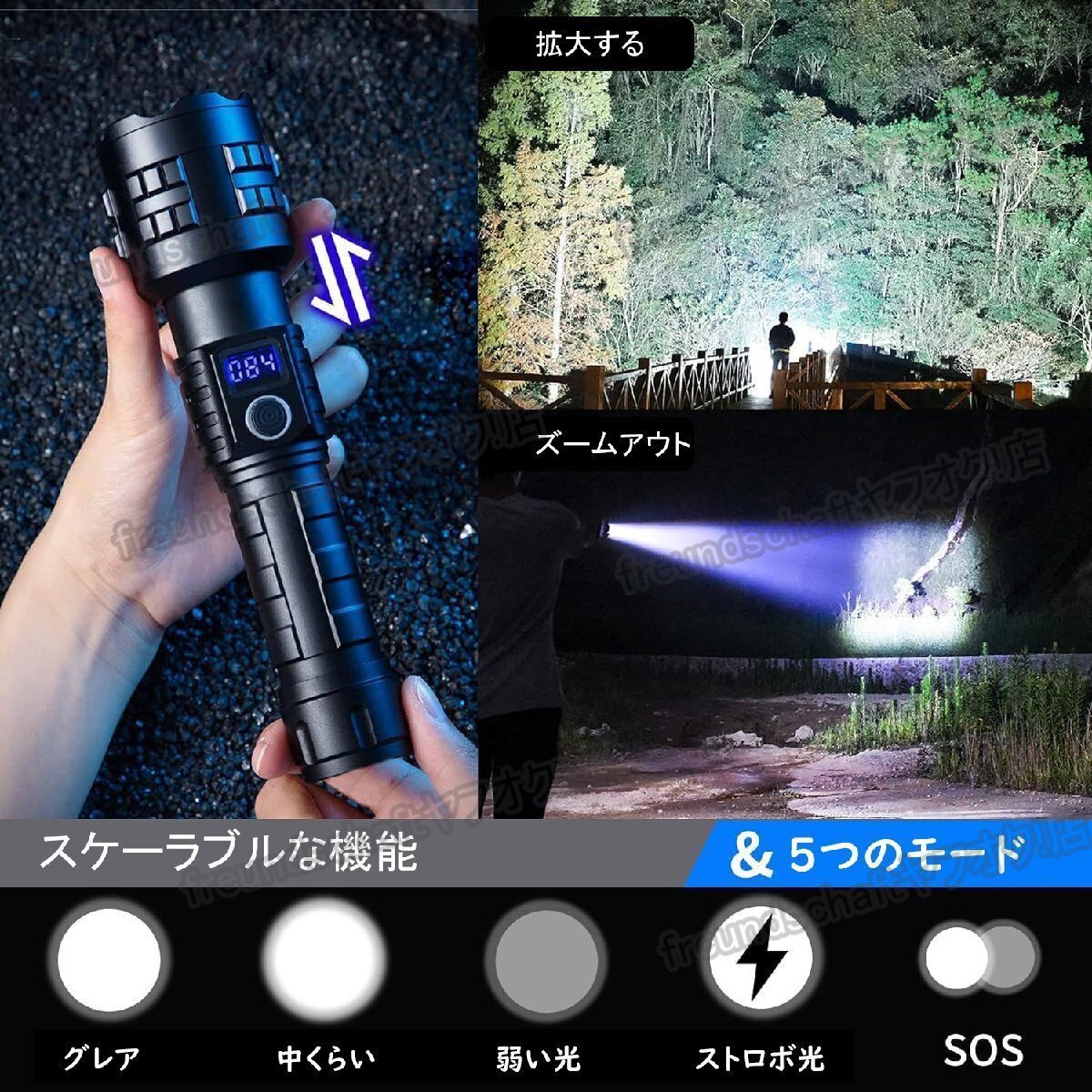 【新品未使用】 LED懐中電灯 50000ルーメン フラッシュライト Type-C充電 5段調光 充電式 懐中電灯 軍用 最強 XHP70 登山/防災 zchw0284