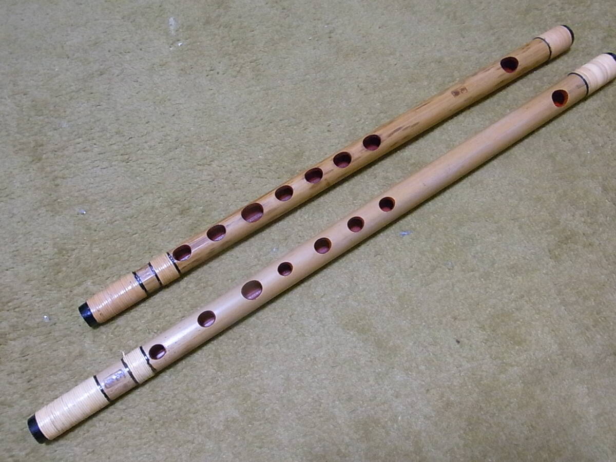 篠笛 2本セット 現状渡し 竹製 元海 7穴10本調子 囃子用 7穴8本調子 唄用、ドレミ調