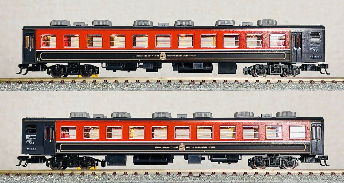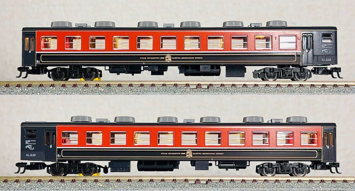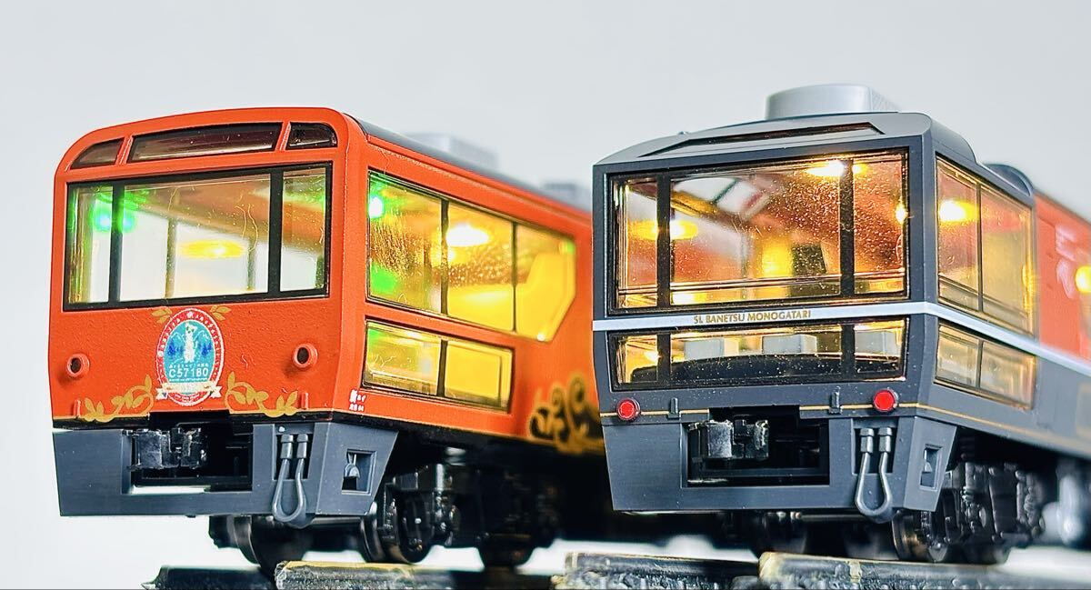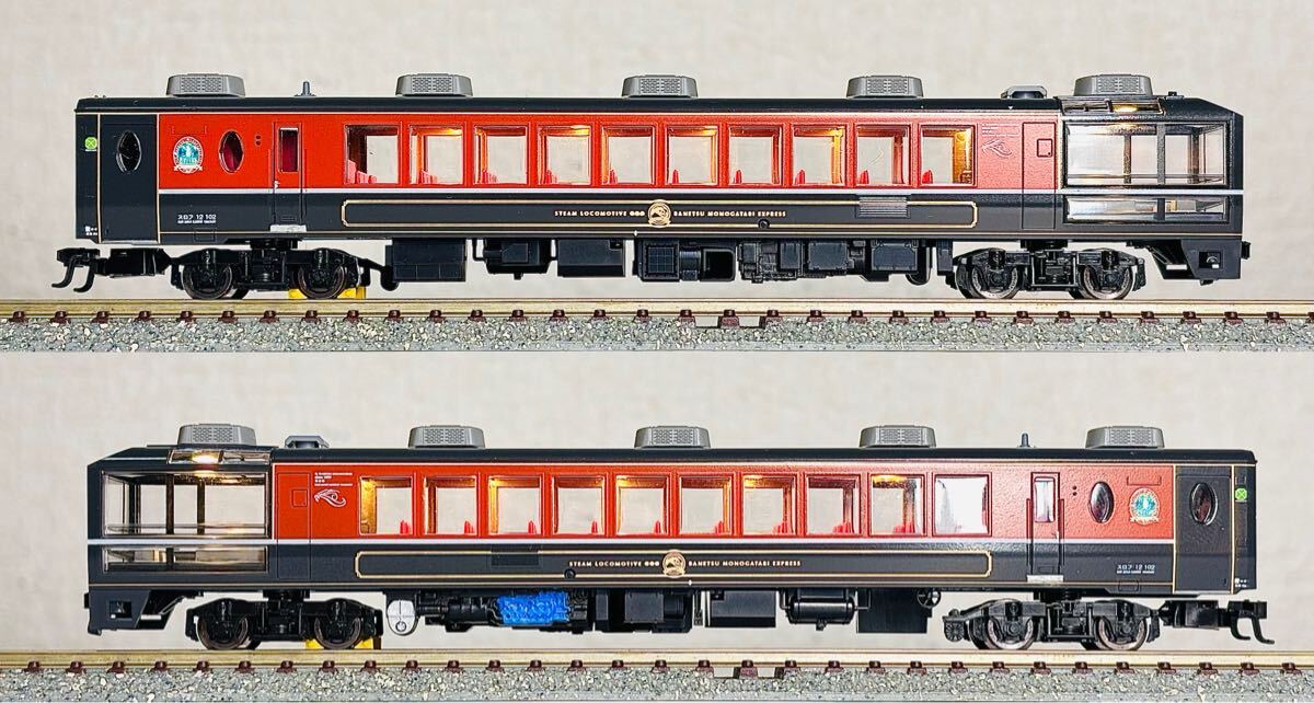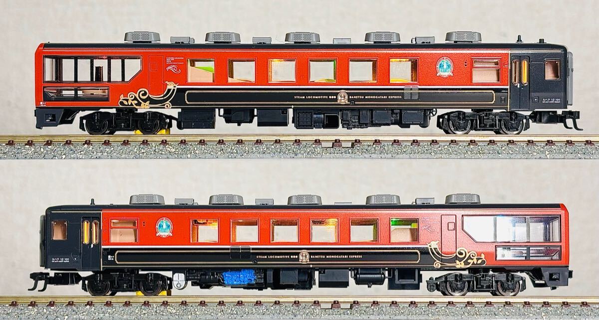 ・編成両端の機関車連結面側のカプラーはT社製ボディマウント密自連タイプをベースにK社製ナックルと連結可能になるよう加工しております(自動連結不可)