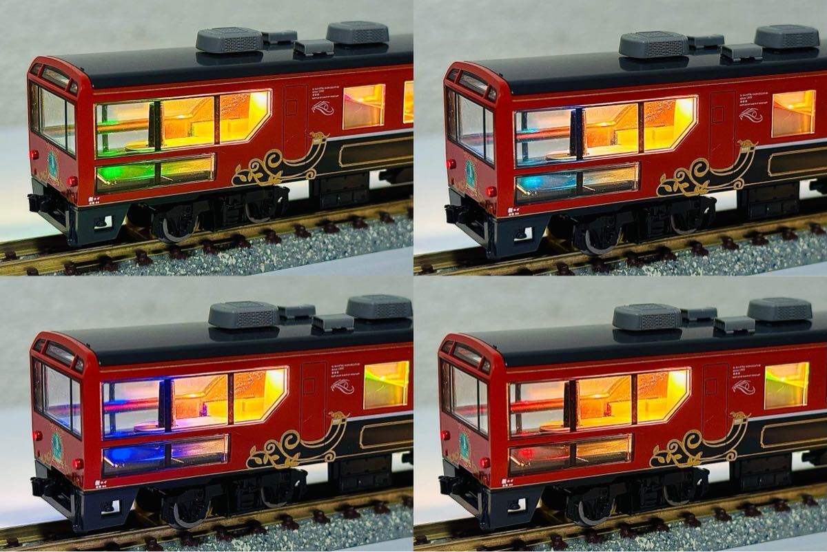 ・オコジョ展望車の"スハフ12-101"の室内灯はカラフルに点灯することで実車のイベントカーらしい雰囲気を再現しています