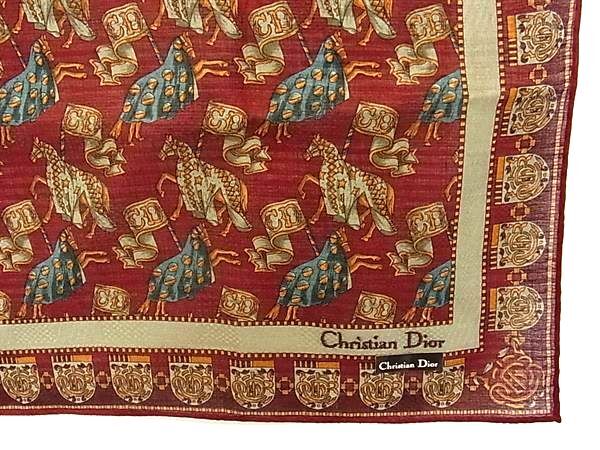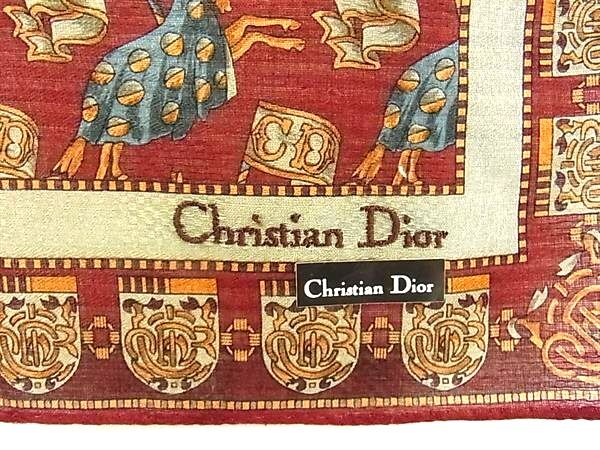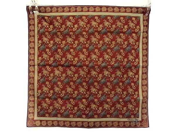 ■新品同様■ ChristianDior クリスチャンディオール コットン100% ハンカチーフ ポケットチーフ スカーフ ボルドー系 DI9846
