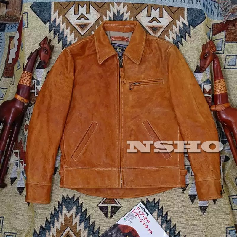 ★ご落札後お取引ナビでご希望サイズをお知らせください★ 0.9mm厚のホースハイドを使用した、1930年代トラッカースタイルのシングルライダースです。 植物鞣しとオイル仕上げによって、馬革ならではの重厚感と深い艶を引き出しています。 ホースハイド特有の張りとコシがあり、着込むほどに体へ馴染み独特の風合いが育ちます。 軽快な厚みに仕上げているため、日常使いでも動きやすく快適にご着用いただけます。 1930年代を思わせるトラッカースタイルは、クラシックかつ無骨な雰囲気を演出します。 シンプルなシルエットながら存在感があり、幅広いスタイリングに合わせやすい一着です。 通勤やカジュアルシーンはもちろん、特別な日の装いにも活躍いたします。 ギフトとしても喜ばれる、上質なレザージャケットです。 ■状 態 :新品未使用 ■カラー :画像参考 ■実 寸 :背中側採寸 身幅/脇下すぐ ■SIZE :画像参考 ■素材:ホースハイド (馬革) ※サイズだけでは無く,必ず実寸をご確認下さい。 ※実寸は平置実寸。計測の仕方で若干の誤差がありますので参考程度。 |