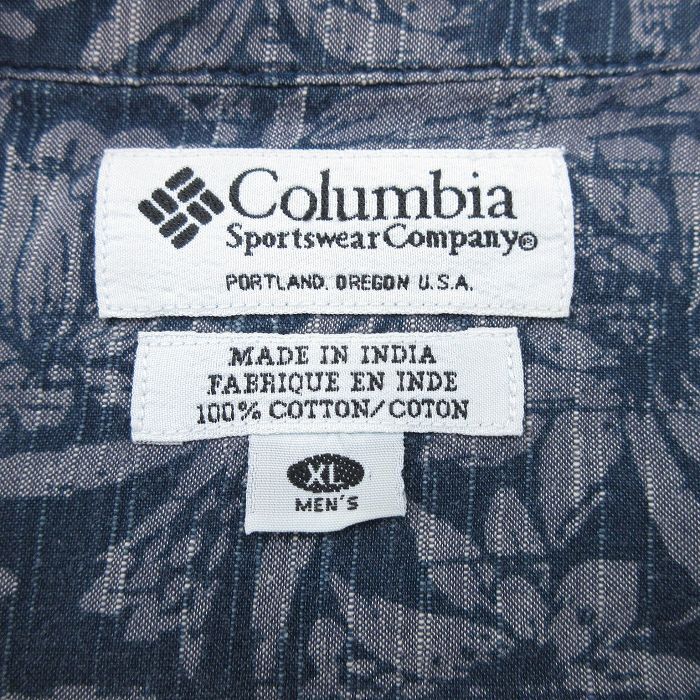 【商品名】 XL★古着 コロンビア 半袖 シャツ メンズ 00年代 00s 花柄 大きいサイズ コットン 紺他【spe】