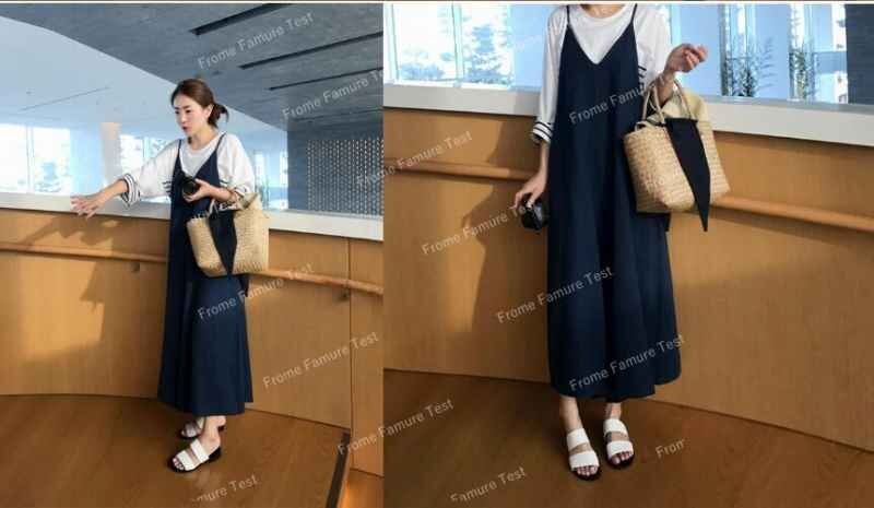夏新しいサスペンダースカート サロペットスカート ファッションレディーススカート L ネイビー