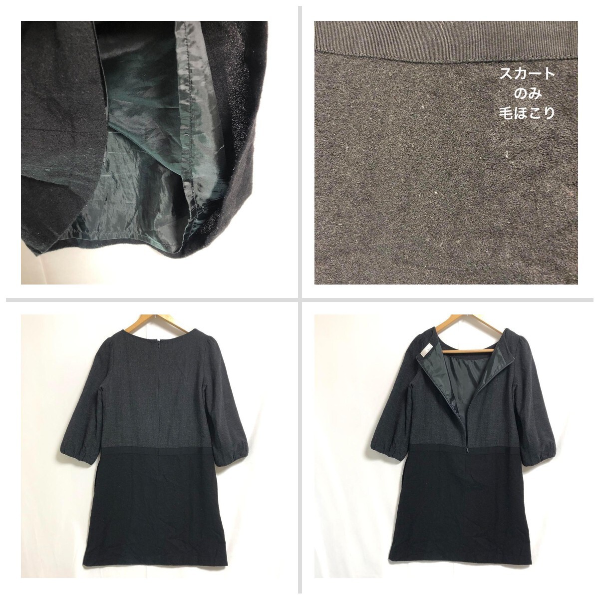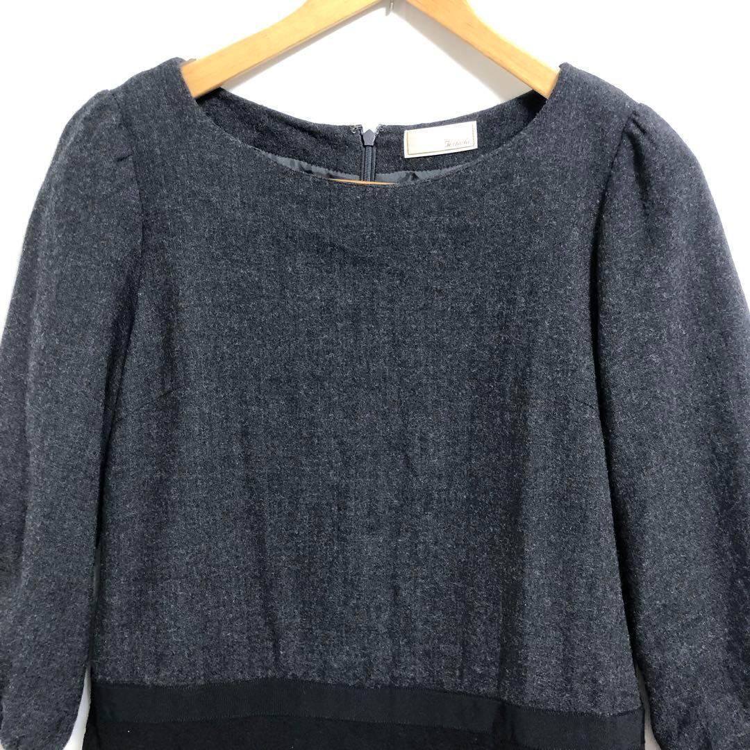 テチチ(M) ミディワンピース 膝丈 七分袖 毛100 ツートン C96CA9
