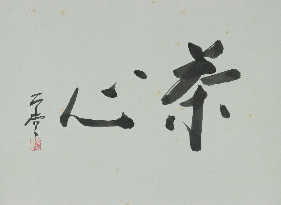 12000■【真作】古田紹欽 書 「茶心」 肉筆 共箱 仏教学者 鈴木大拙師事 掛軸