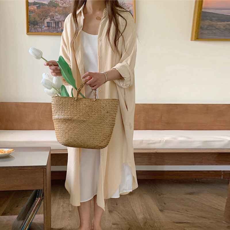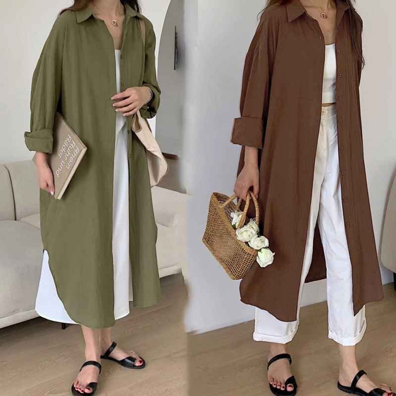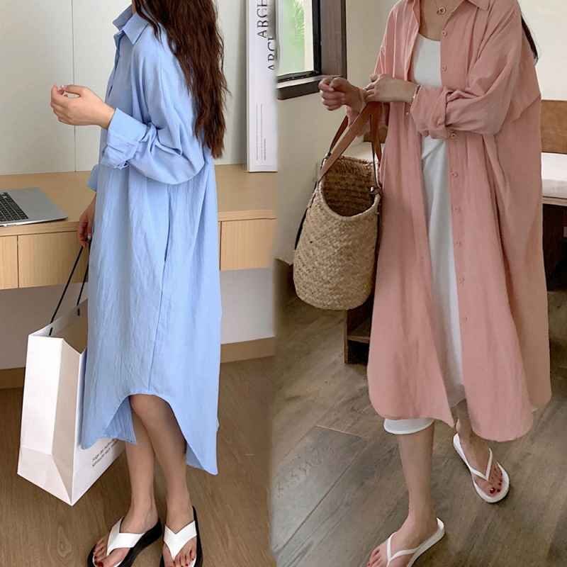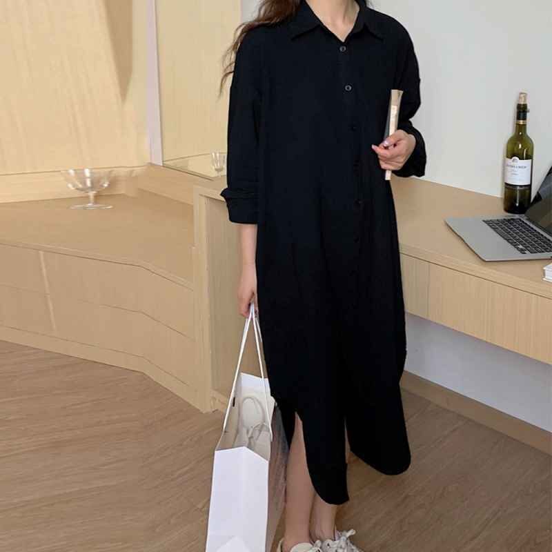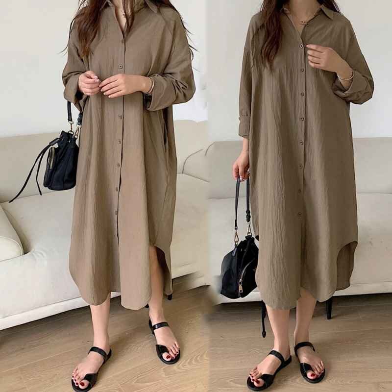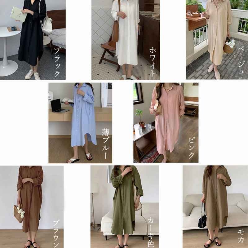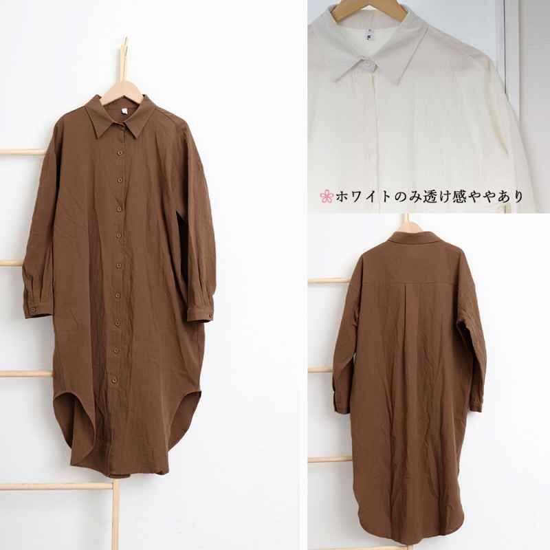 シンプルなデザインで大人な着こなし長袖の開襟シャツワンピース