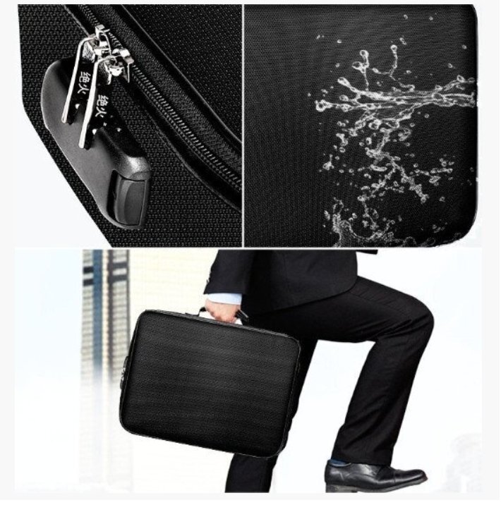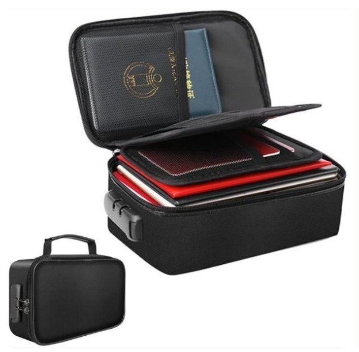 収納ポーチ バッグ 防水 防火 手提げ パスワードロック付き マルチケース 多層収納 貴重品入れ 領収書 パスポートチケット旅行 安全