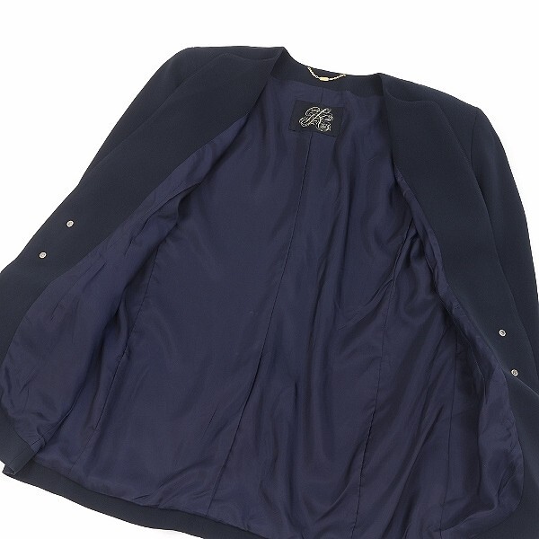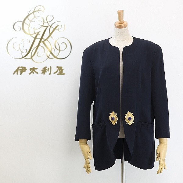 | 【HB349】◆伊太利屋 ボタンレス ノーカラー ジャケット 紺 ネイビー 9A2 | |