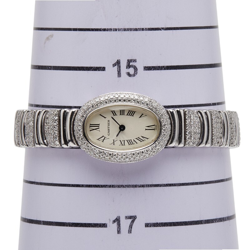 カルティエ ミニベニュワール アフターダイヤ 腕時計 クオーツ ベージュ文字盤 K18WG ホワイトゴールド レディース CARTIER 【中古】