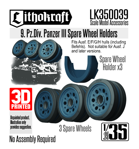 Lithokraft LK350039 1/35 9 PzDiv Pz III Spare Wheel Holders w/ 3 Spare Wheels