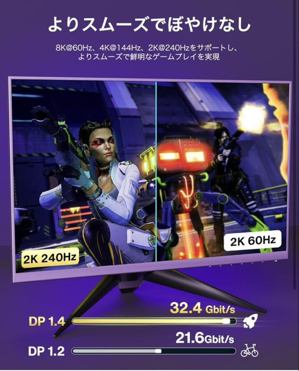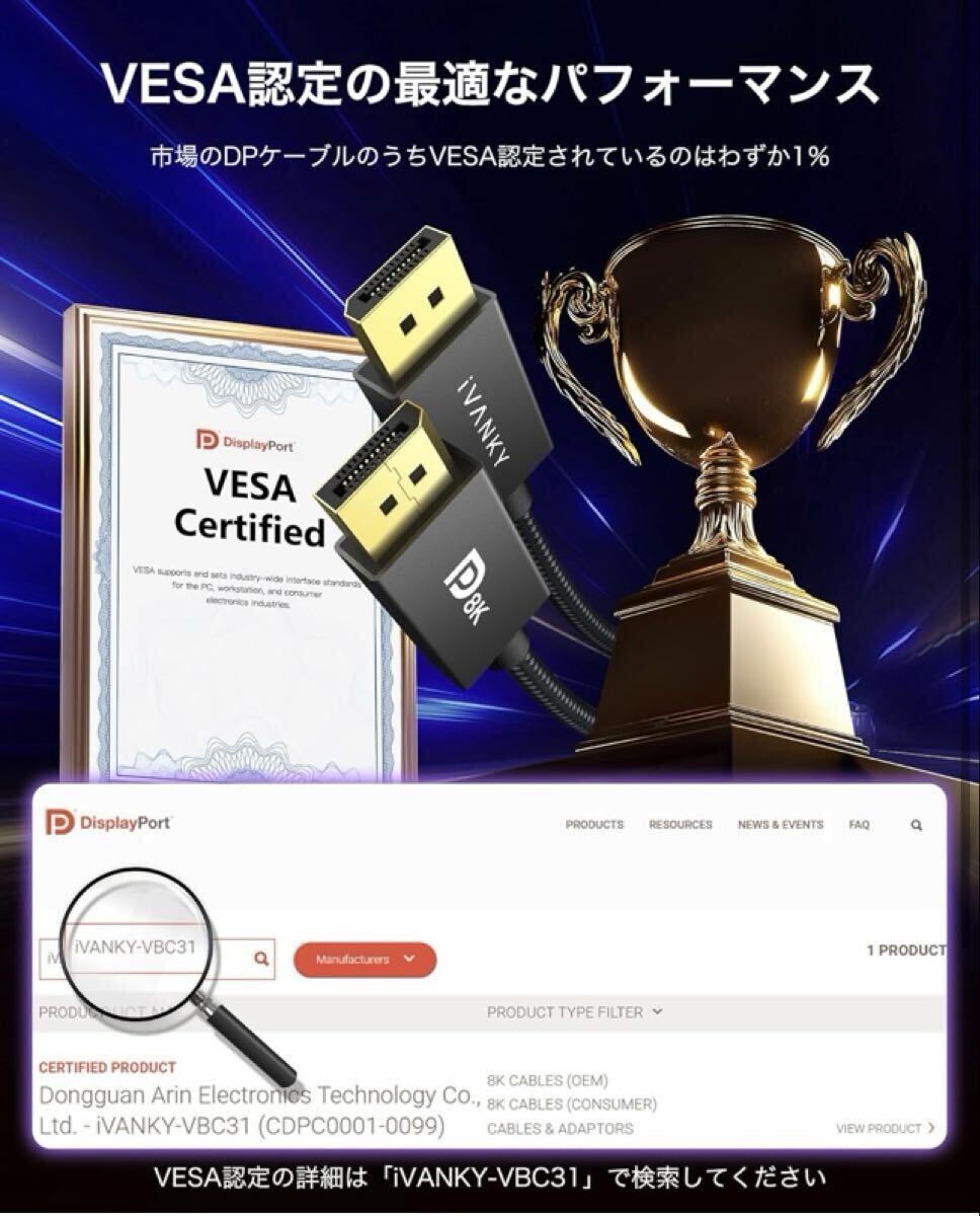 【8K対応 超高解像度dpケーブル】iVANKY DisplayPort 1.4規格のディスプレイポート ケーブルが8K@60Hz/4K@144Hz/1080P@240Hzを実現。displayport ケーブル 1.4ならではのDSC技術でeスポーツも滑らかに表示。ゲーミングモニターに最適なモニターケーブルです。