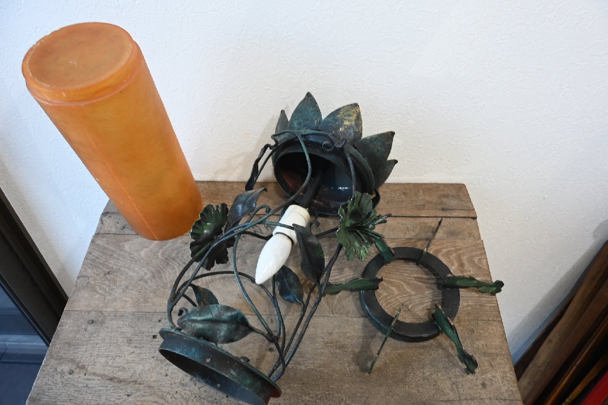 ○昭和 ハイビスカス風のお花と蔓飾りの外灯 吊り照明 レトロ シャビー ヴィンテージ 古道具のgplus広島 2511i⑫