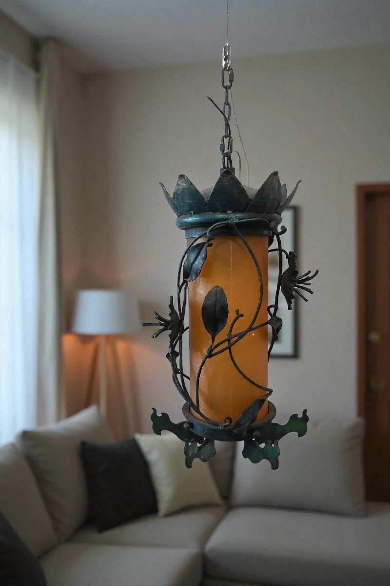 title:ハイビスカス風のお花と蔓飾りの外灯 吊り照明 レトロ シャビー ヴィンテージ 古道具のgplus広島 2511i