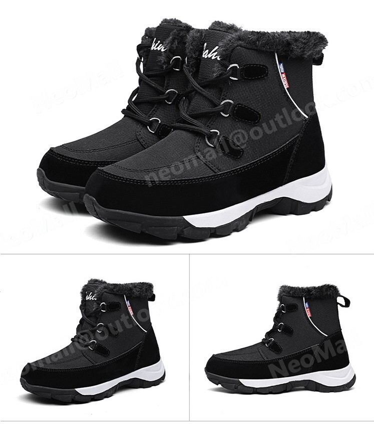 レディース スノーシューズ 【972】 ブラック 25.0cm ムートンブーツ スニーカー ウィンターブーツ 裏起毛 防水 防寒 防滑 冬用靴 綿靴