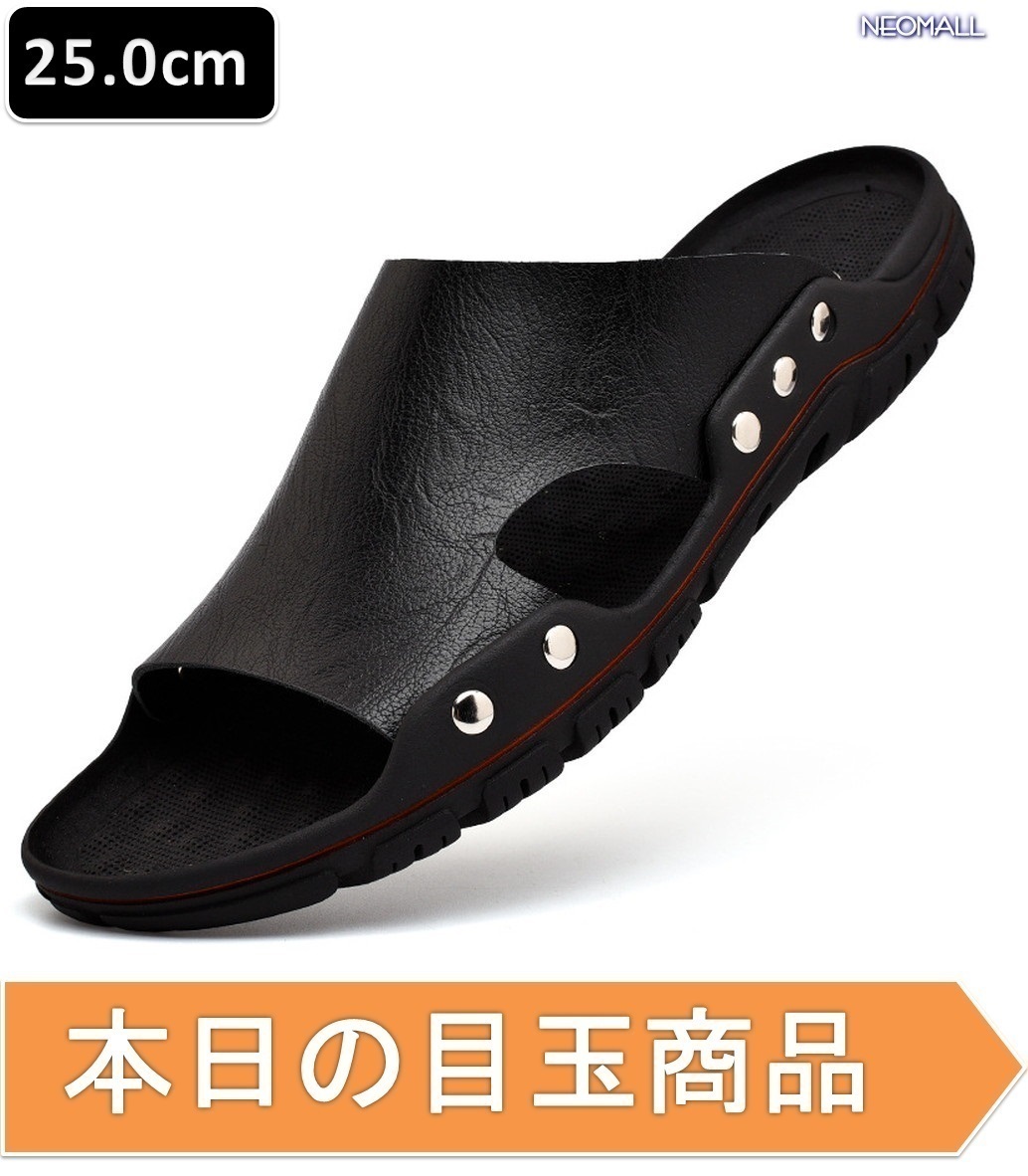本日の目玉商品 ☆ レザーサンダル 25.0cm ブラック 【330】 ウェッジソールで疲れにくい!! 夏 サンダル スリッパ