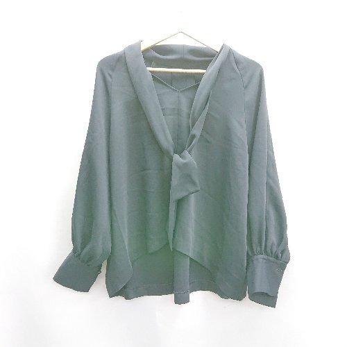 ◇ ⊇ INED イネド ダブルクロス 長袖 ボウタイブラウス サイズ9 ネイビー レディース E
