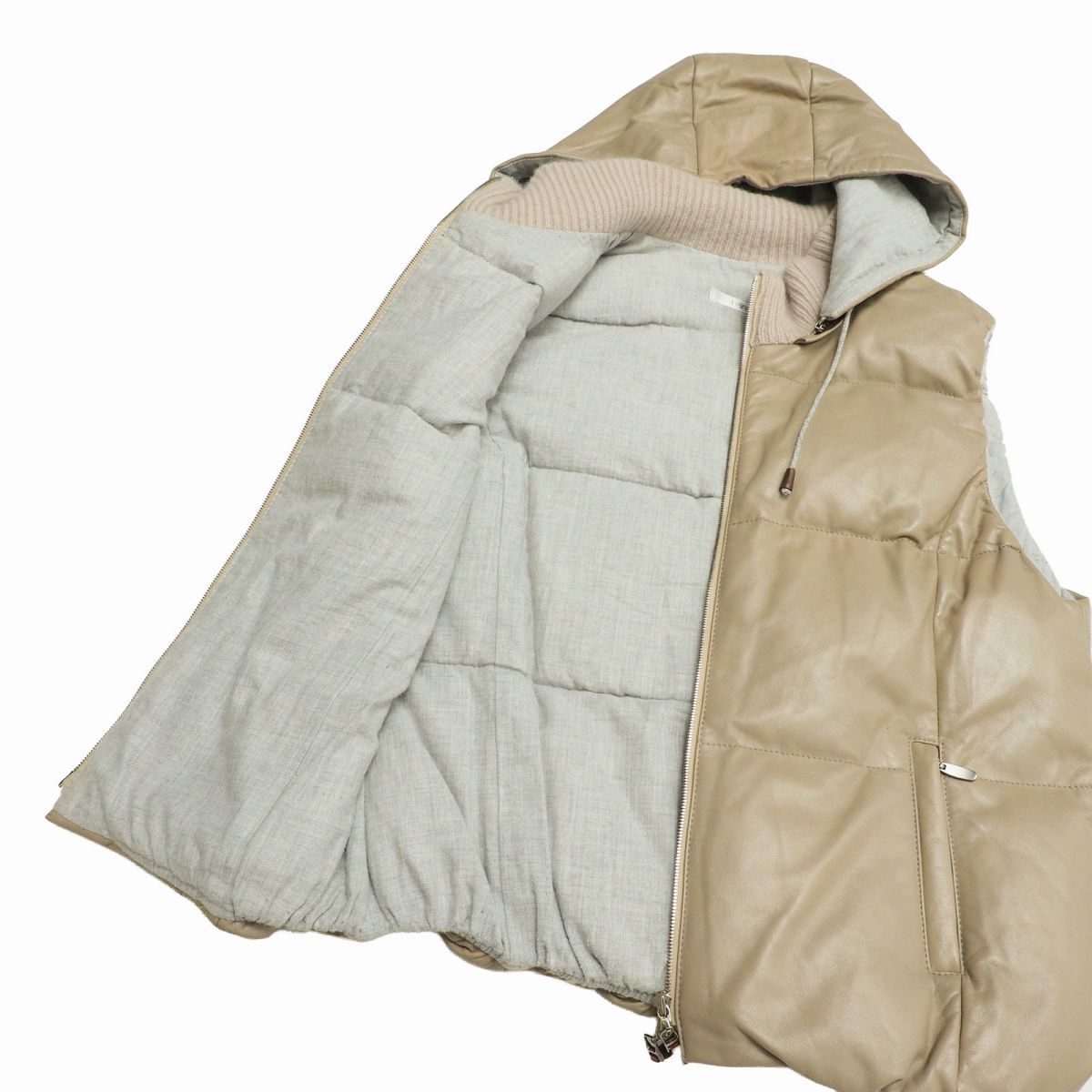 | GS6615●blancvert/ブランベール*シープスキン フード付き ダウンベスト*レザー*羊革*本革*レディース サイズ40*ベージュブラウン系 | |||
