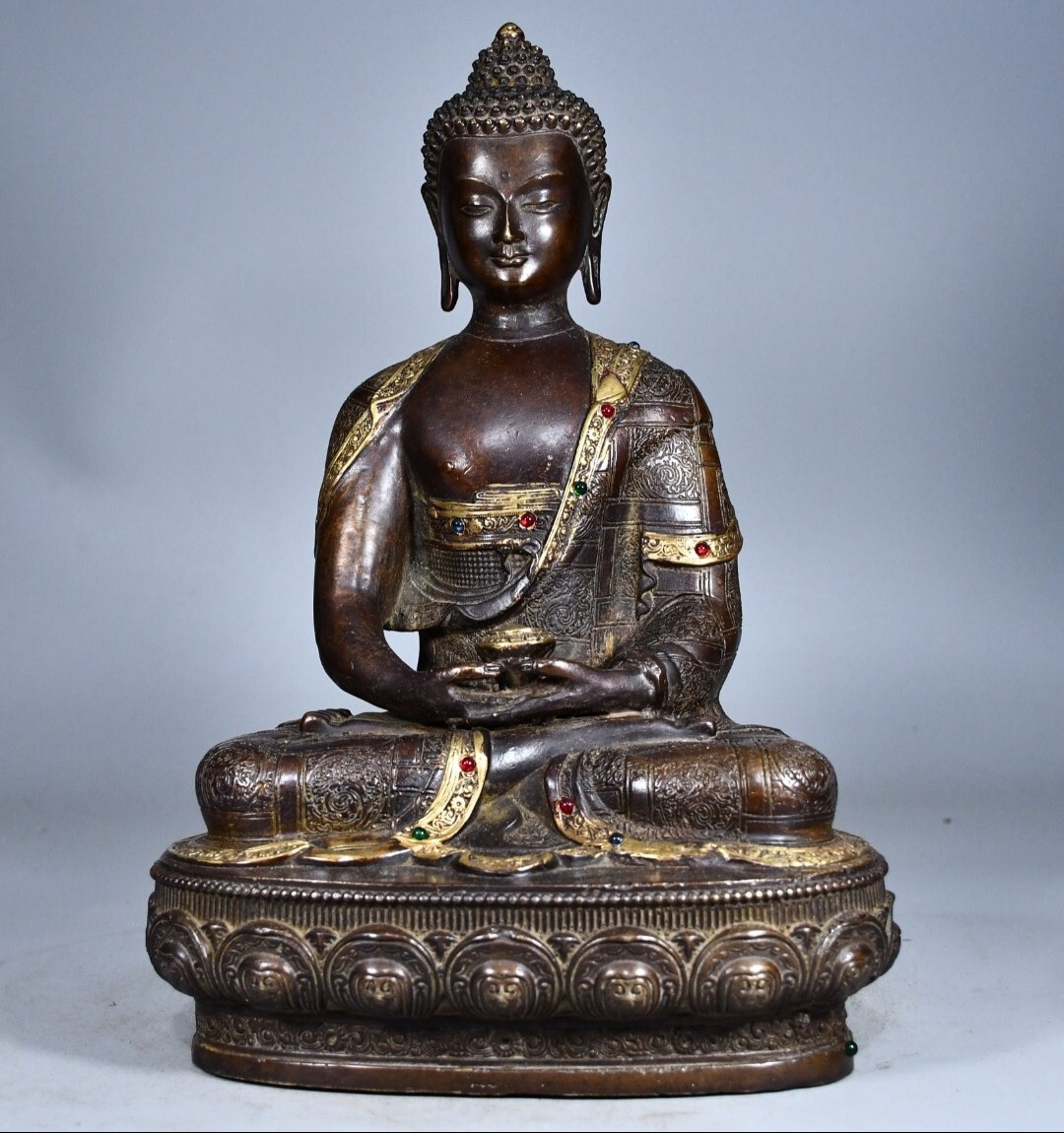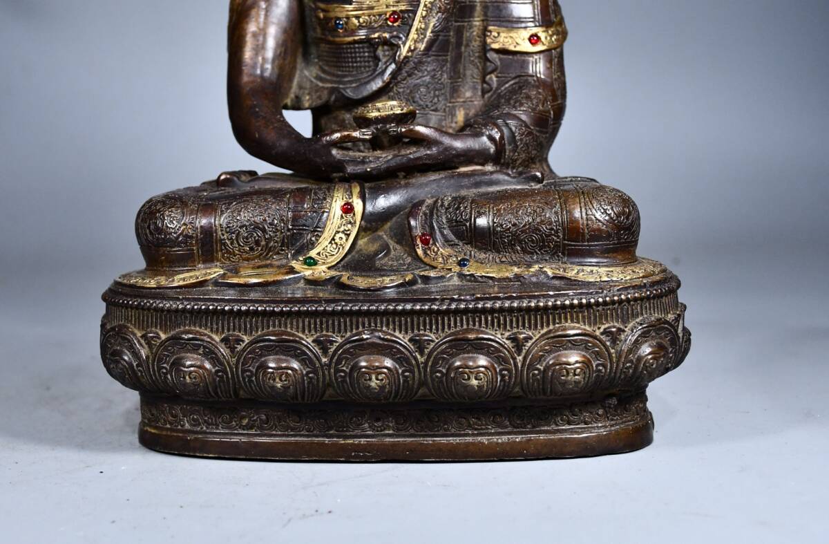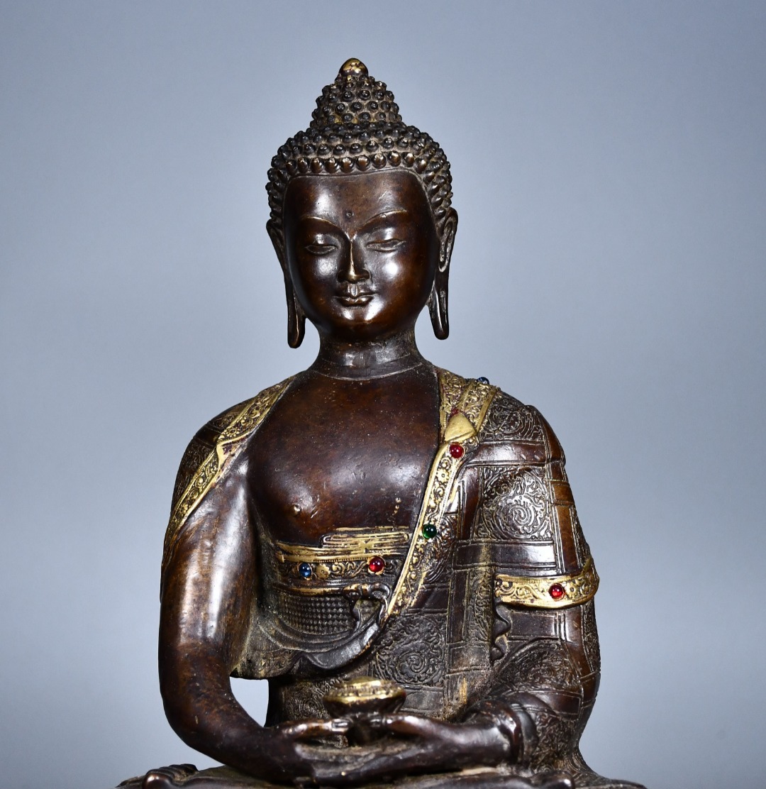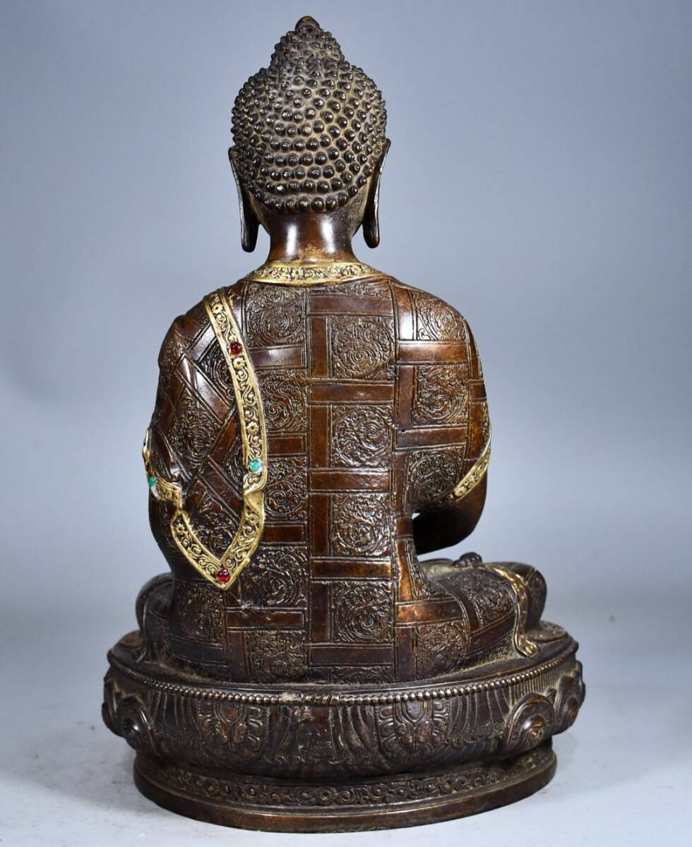 *珍品旧蔵* 清 黄銅 モザイク寶石 釋迦牟尼 胎體厚重 仏像 極細工 中国古玩 仏教古美術 供養品 H45