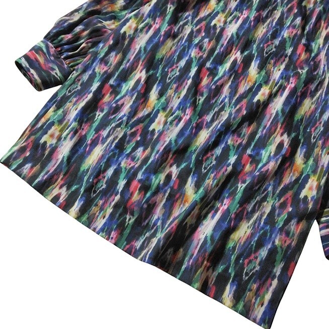カラフルな総柄が目を惹く可愛いブラウスになります