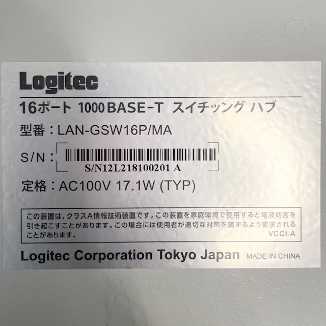 | 5159//Logitec LAN-GSW16P/MA 16ポート ギガビットスイッチ 通電確認済み | |||